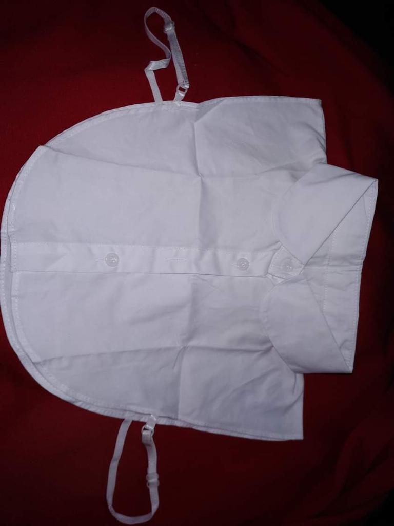 The bib needs to be ironed and tried on. It looks like no more than a size 46-48.