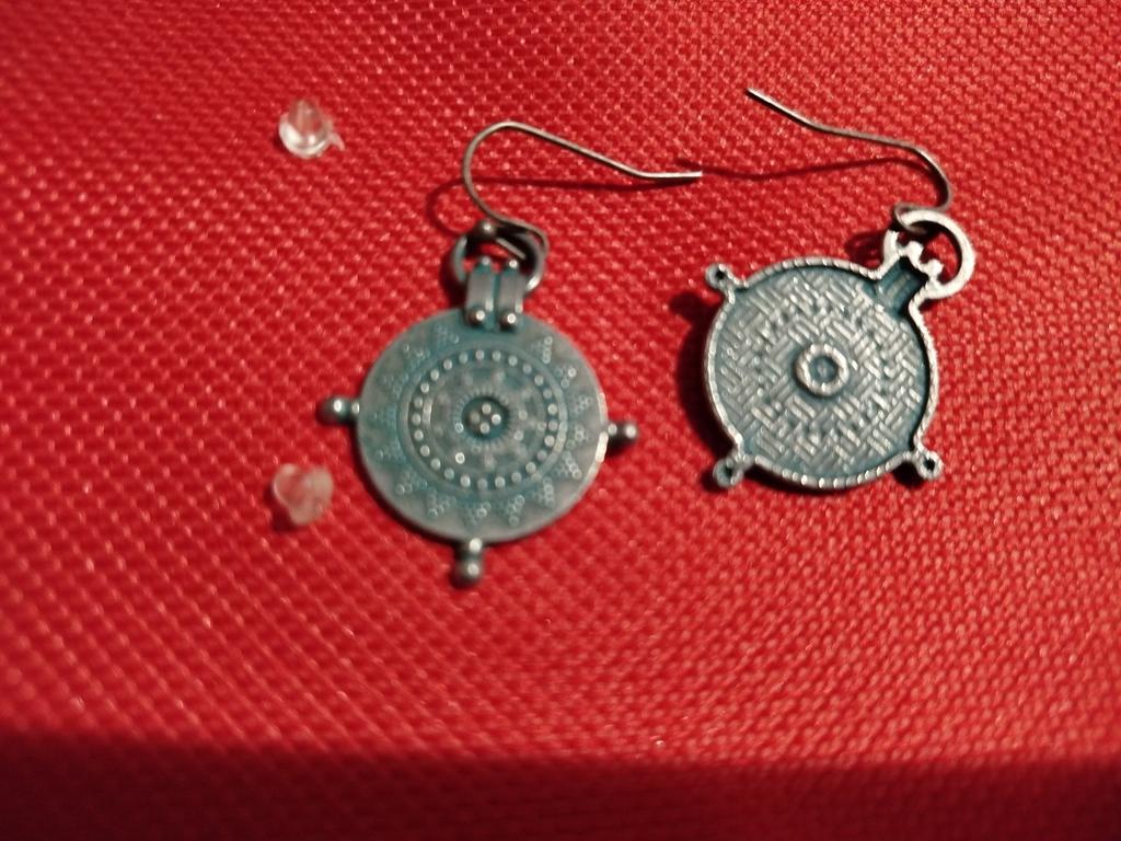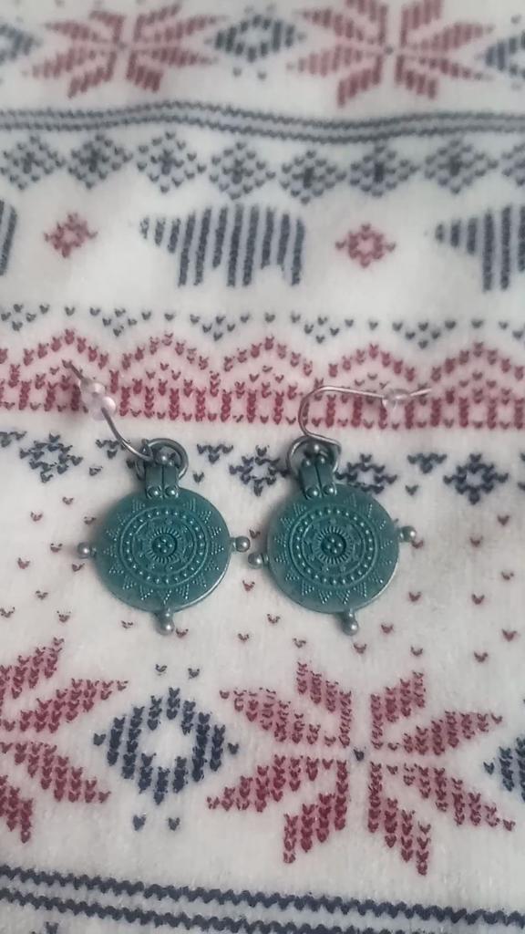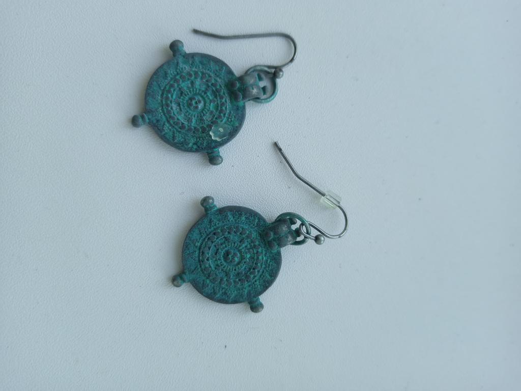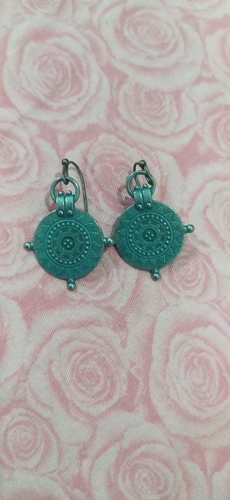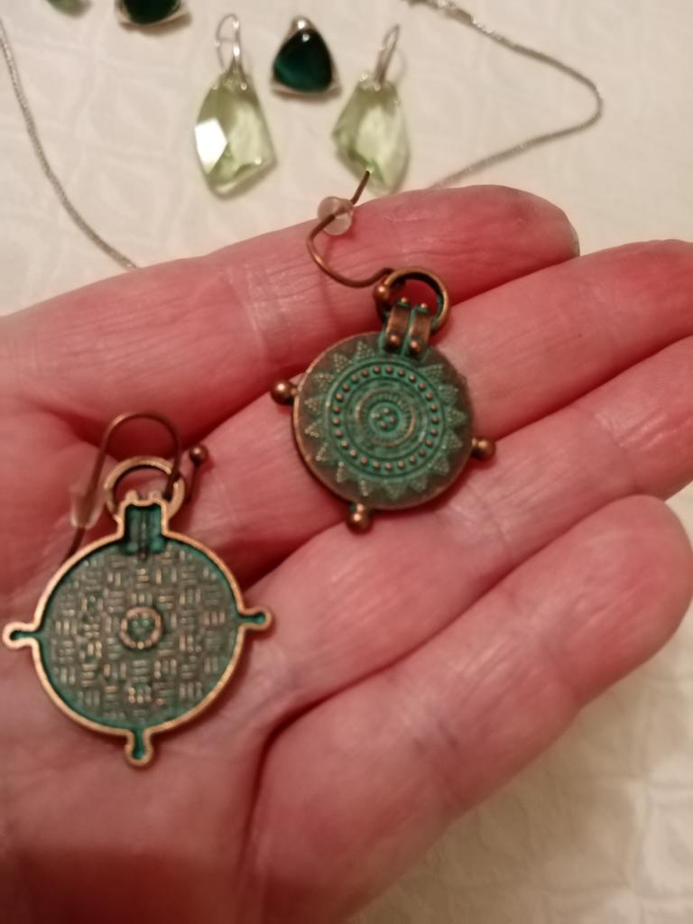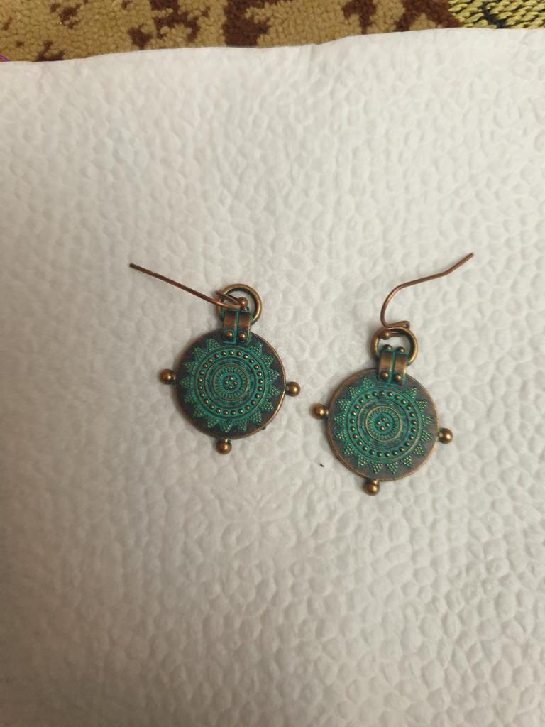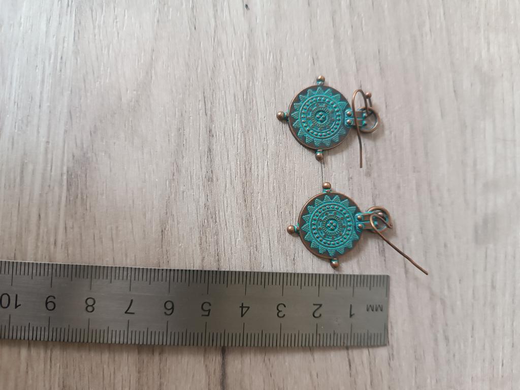 While I was enjoying my vacation at the post office, parcels were already waiting for me. 🎁 Charming earrings in ethno style.☄ Perfectly executed: good detail and drawing on both sides. 🌟 When you look at them, you get the impression that they were made by a master in ancient times. 🌾 The seller has two options for metal, I chose bronze. 😊 The set also includes silicone limiters (caps). When unpacking, be careful not to lose, because they are small. 😉 Before writing a review I wore it for 8 hours. The metal did not cause irritation and did not leave green marks on the skin🌟. Everything is fine. 😊 Who loves such jewelry - I recommend. And the seller was pleased, packed everything carefully in an air-bubble envelope. 😊 The track was tracked and sms про was announced on arrival at the delivery point. This is also a big + .😊 If the review was helpful, please 💙