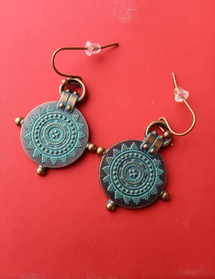 Fashion Vintage Ethnic Boho Jewelry of Dangle Drop Earrings Round Patina Pendant