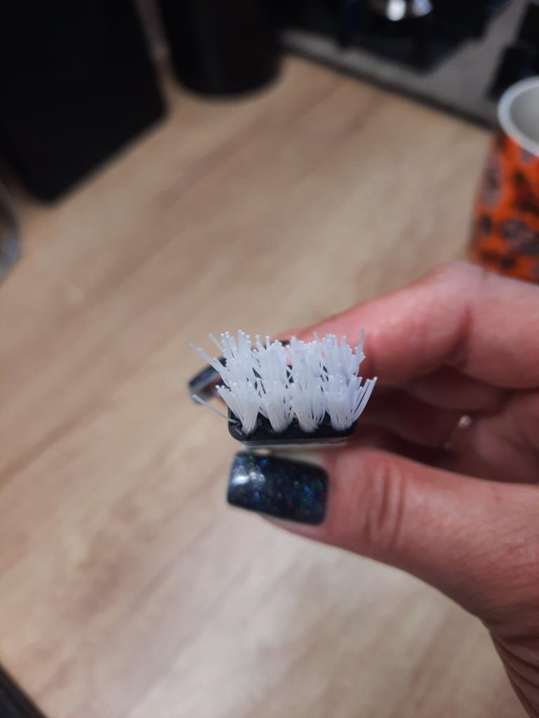 For some reason, all the bristles of the brush are of different lengths and stick out in different directions. Only the body looks like the one in the photo.