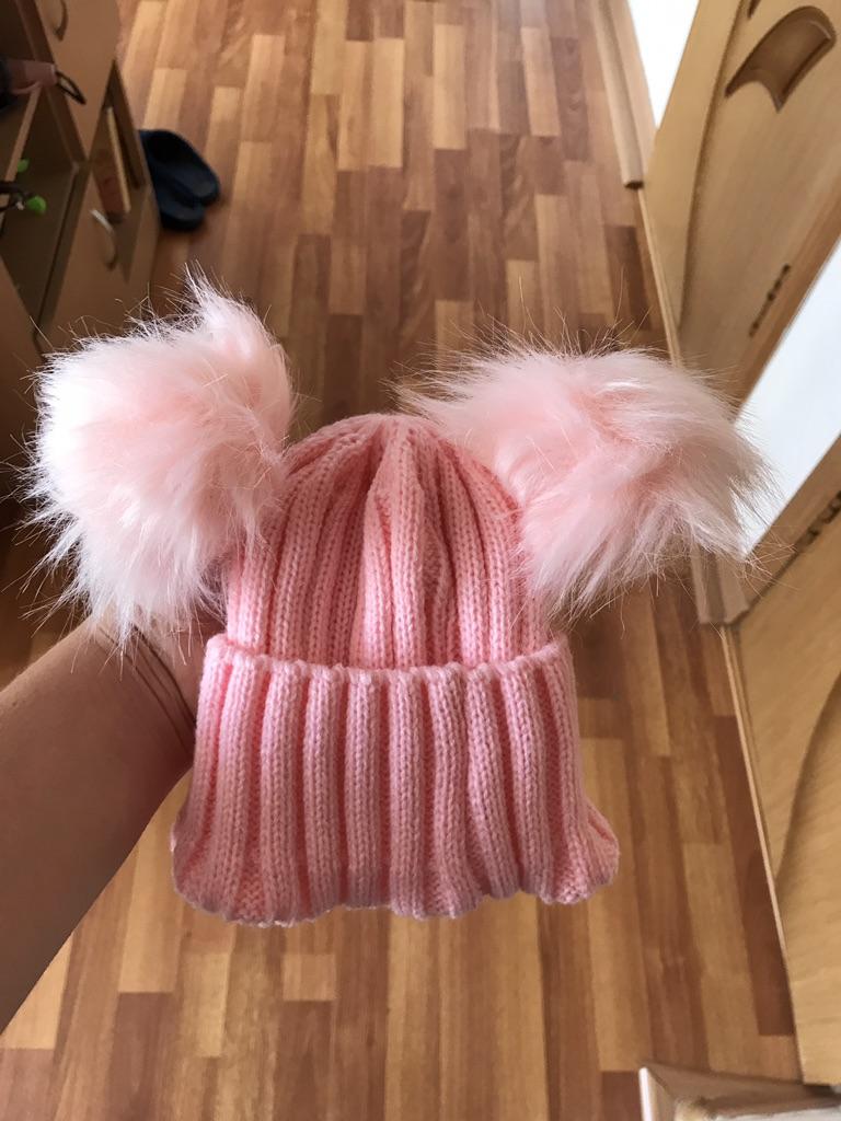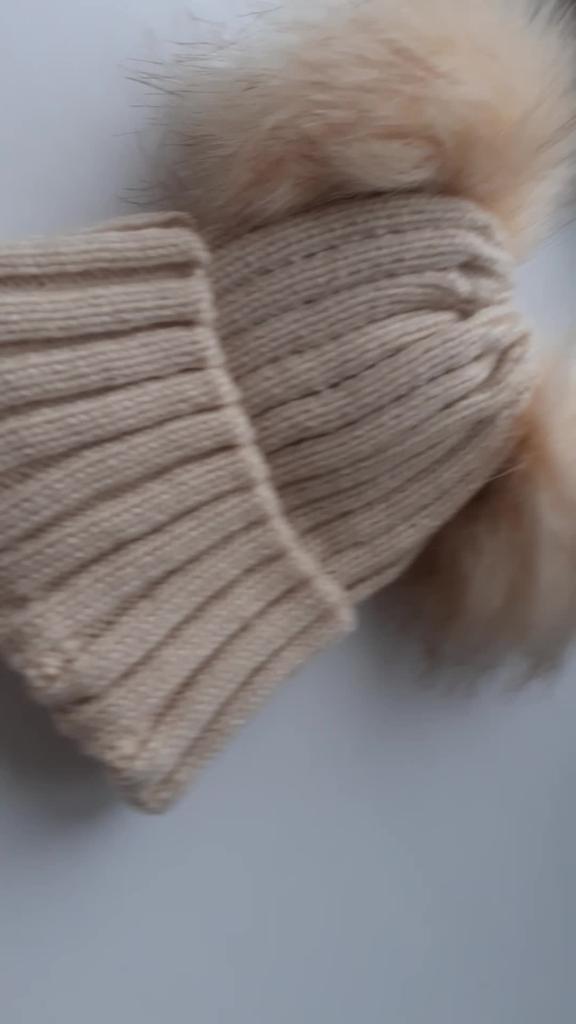 Pretty machine-knitted hat with two fur pompoms. 👍🥰 The finishes and seams are neat, it is perfect for winter. 💝🤧
