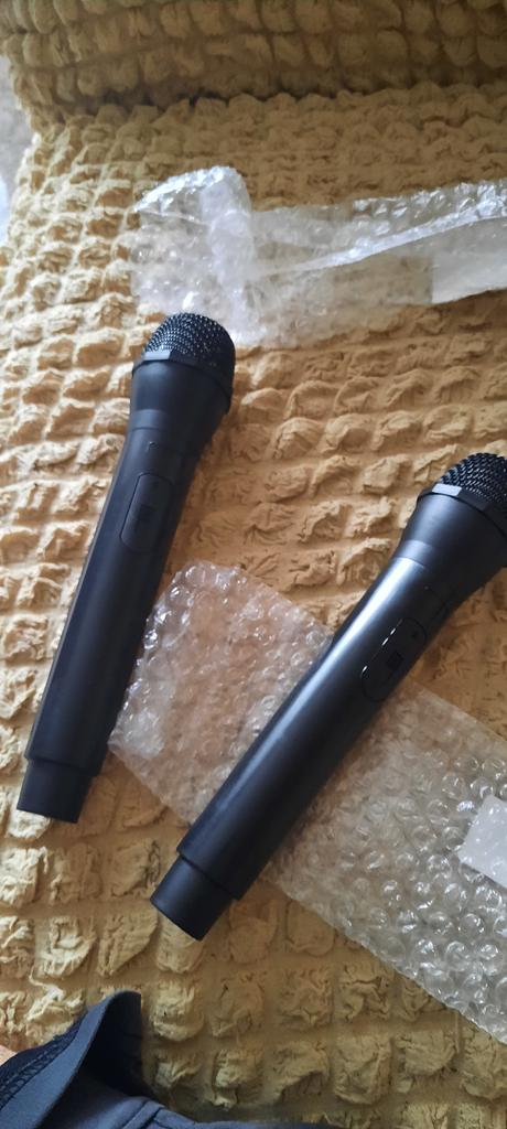 Fake microphones are very light and look like real ones. I order a second time for the team