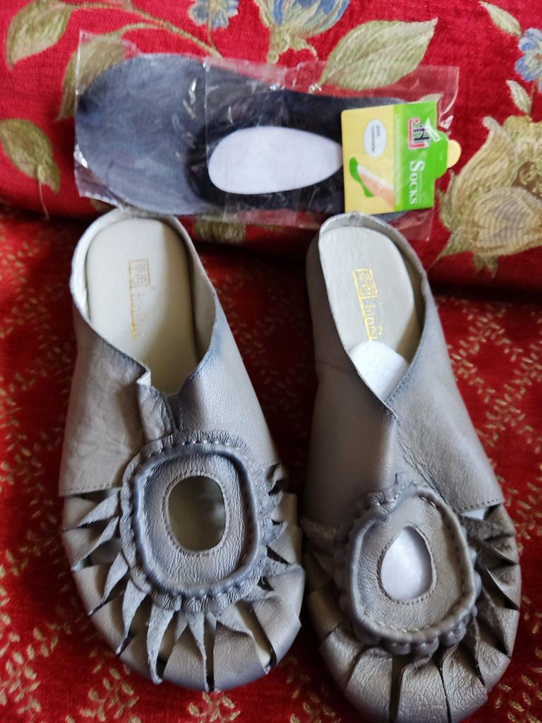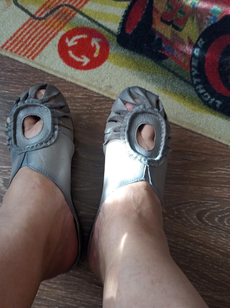I didn't like the flip-flops. The socks are comfortable, wide, and narrow at the instep, although there is an elastic band. It's a pity that it's black... The heel hangs. The bone on the thumb finds itself in the most inconvenient place, protruding outward. Perhaps they are spreading. They look better in the picture.