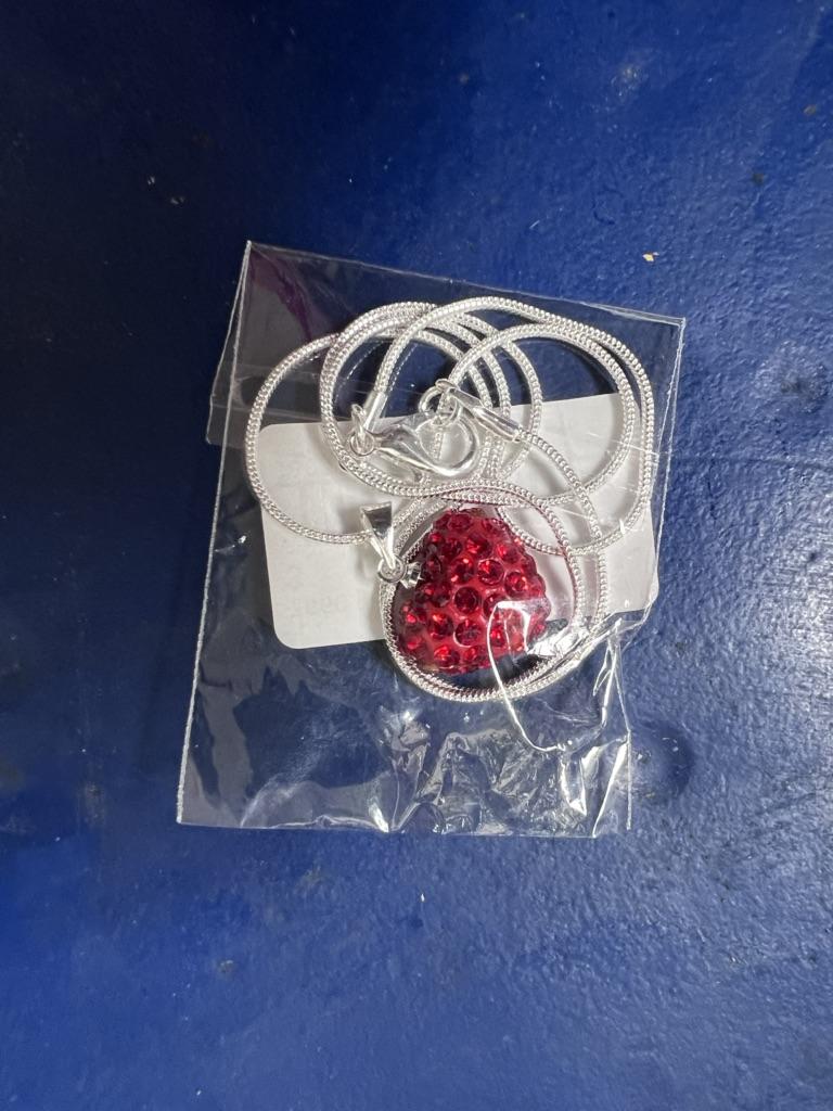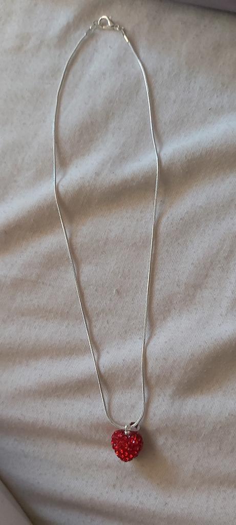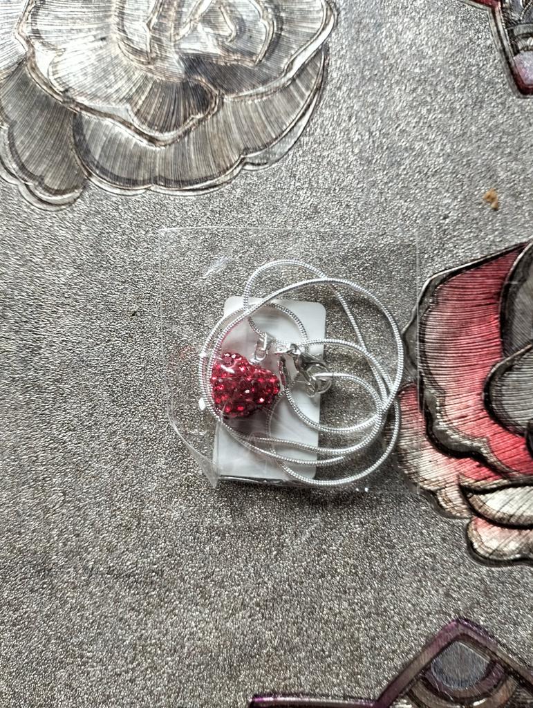 Beautiful silver necklace with a heart The heart is encrusted with rhinestones all around