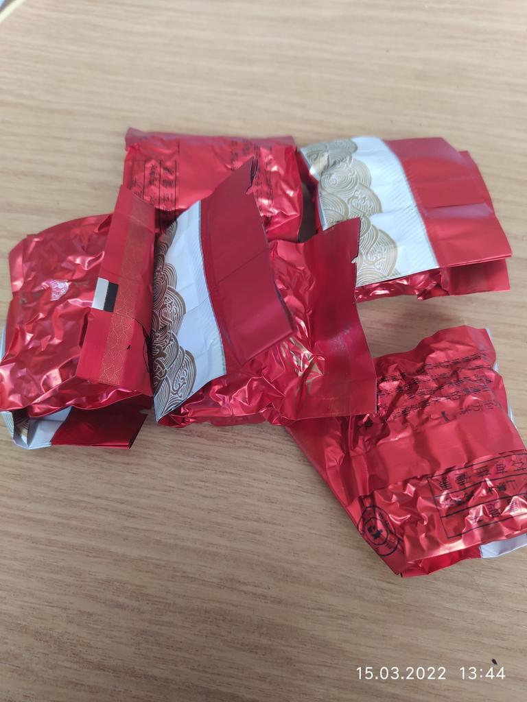 4 briquettes of tea are vacuum packed, hermetically sealed, and the fifth bag is just glued, there is air inside. Not in order, however!