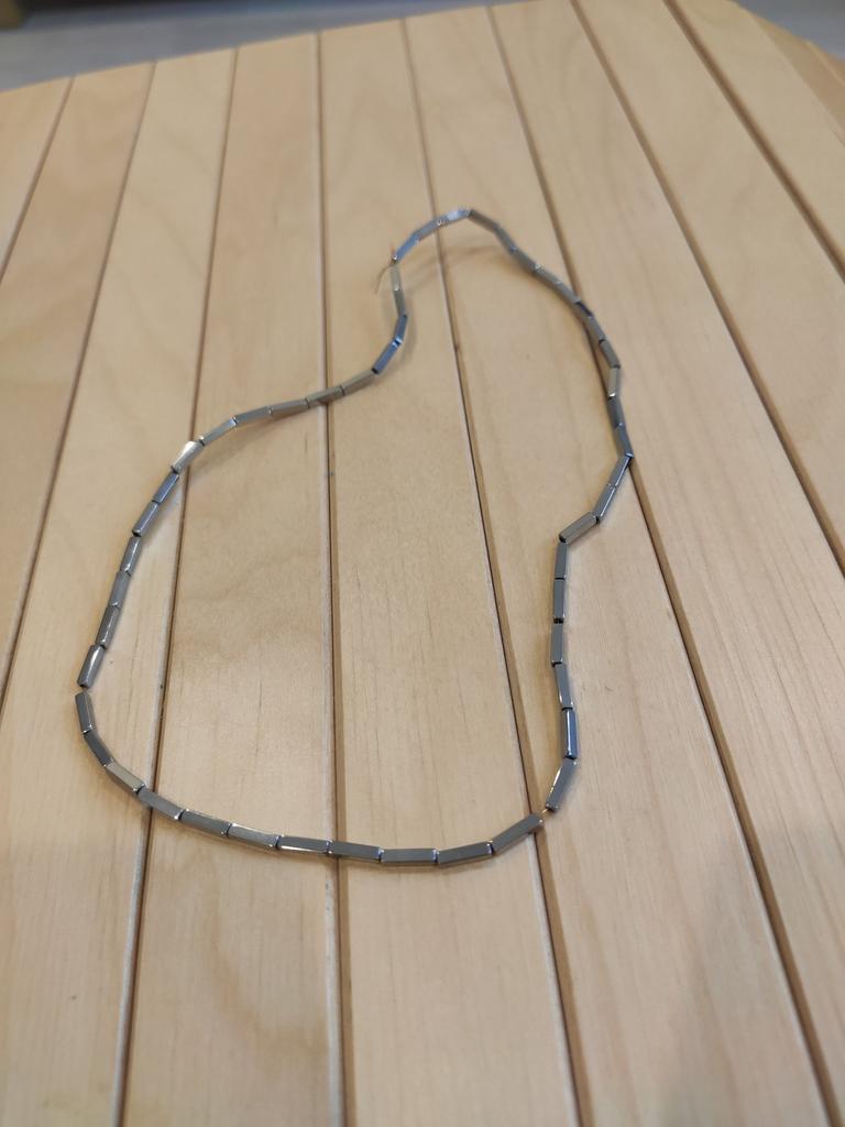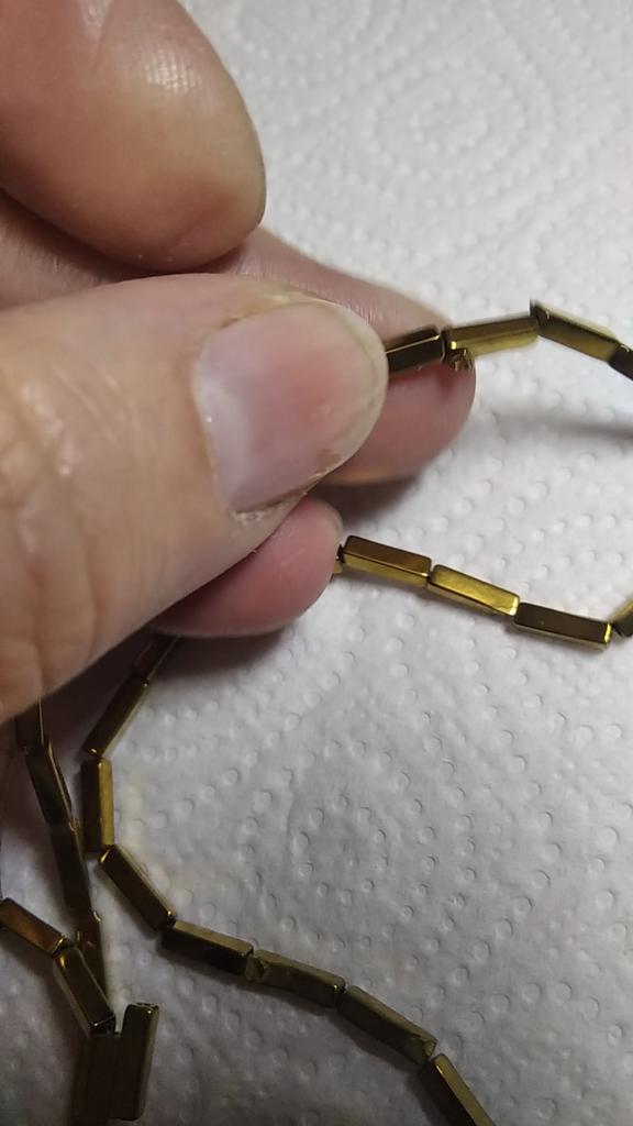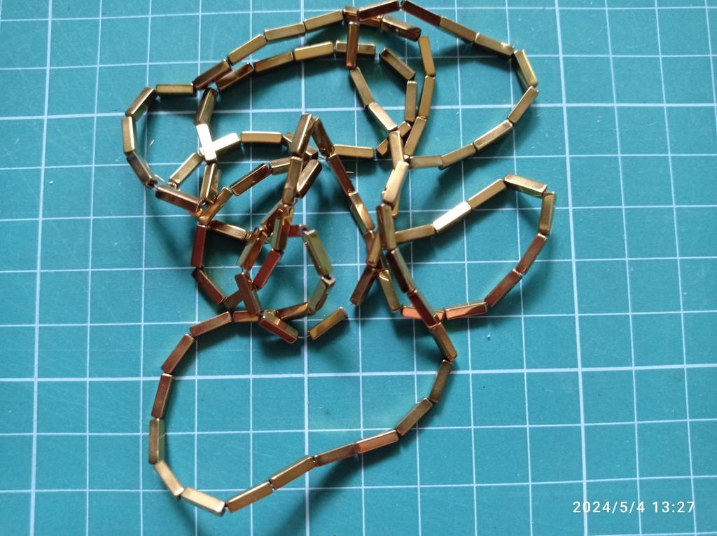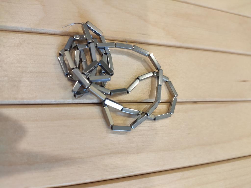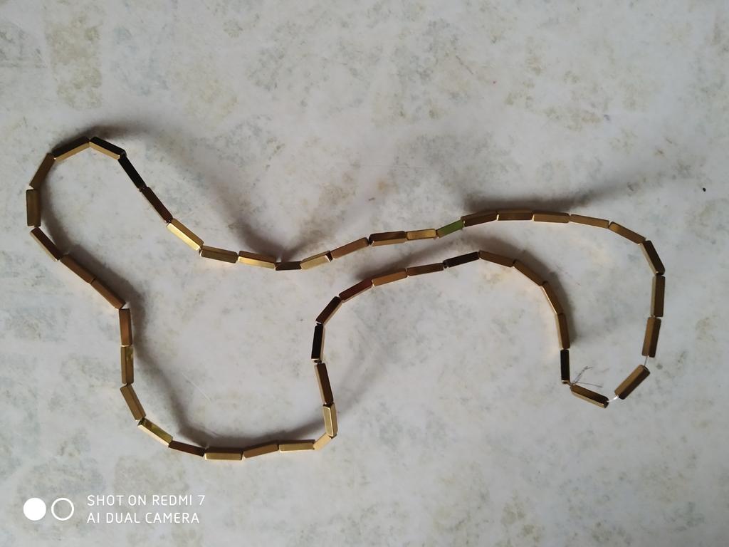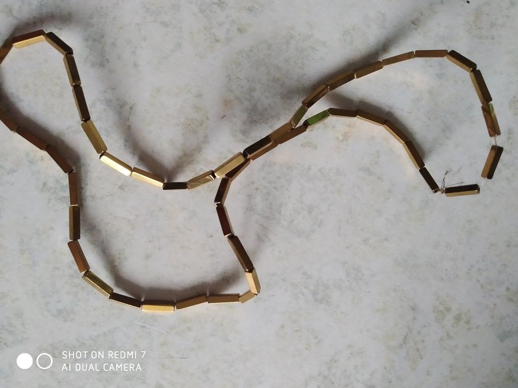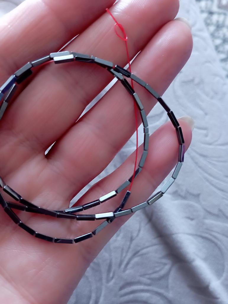 Bead by bead. Light and not similar to hematite. The coating lies unevenly.