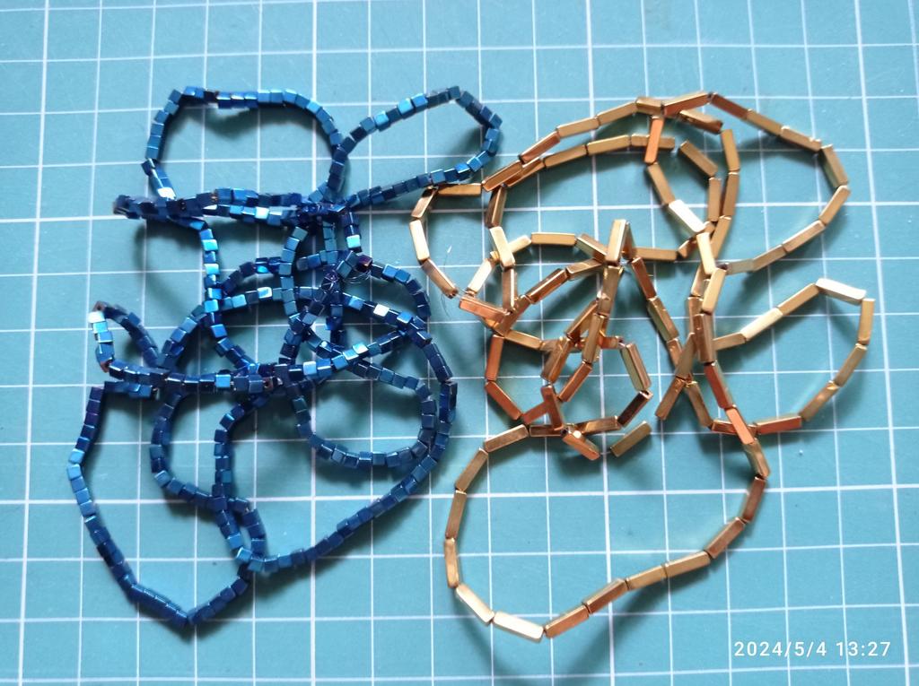 Multi-colored cubic hematite beads have been received. They look good in the product. I recommend purchasing.