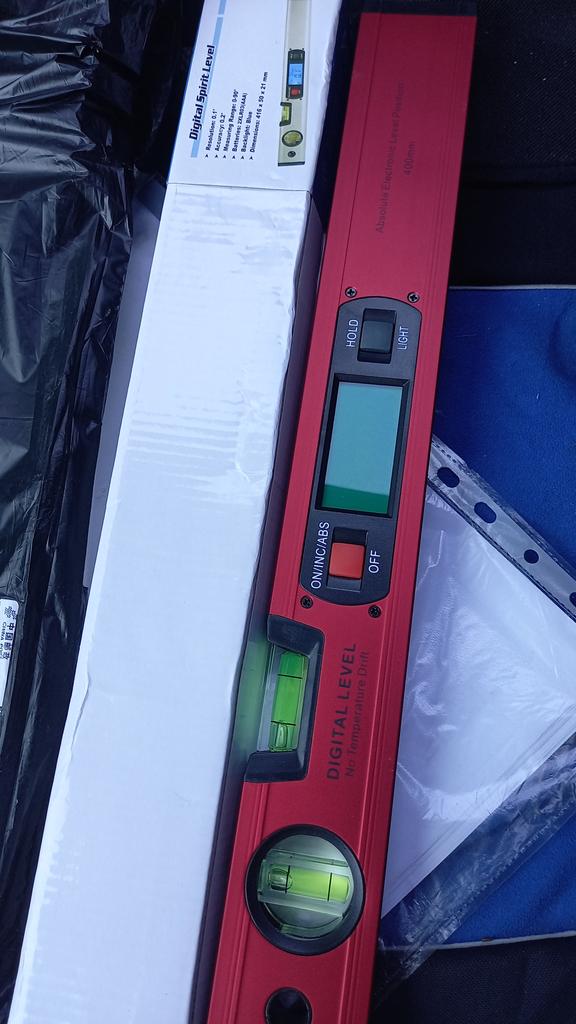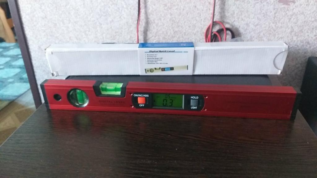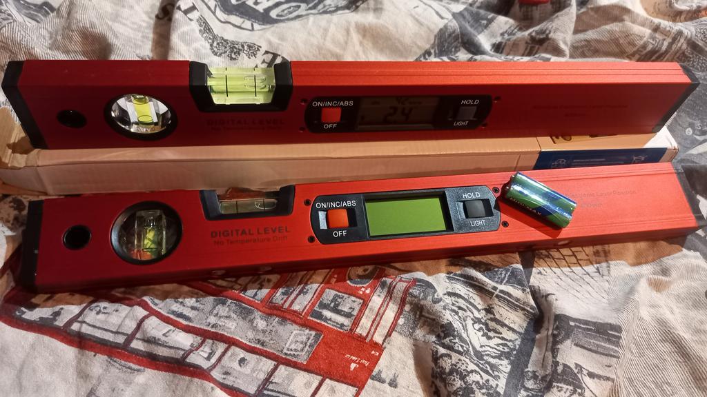 The level has come, I order not the first time, very convenient, electronic, with magnets, which makes the work more convenient, 2 little finger batteries are included, length 400