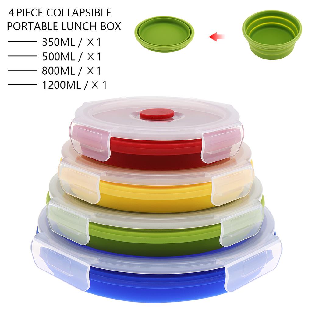 4Pcs Silicone Bento Box Rectangle Folding Lunch Bowl Food Storage Container Box 350 500 800 1200 ML