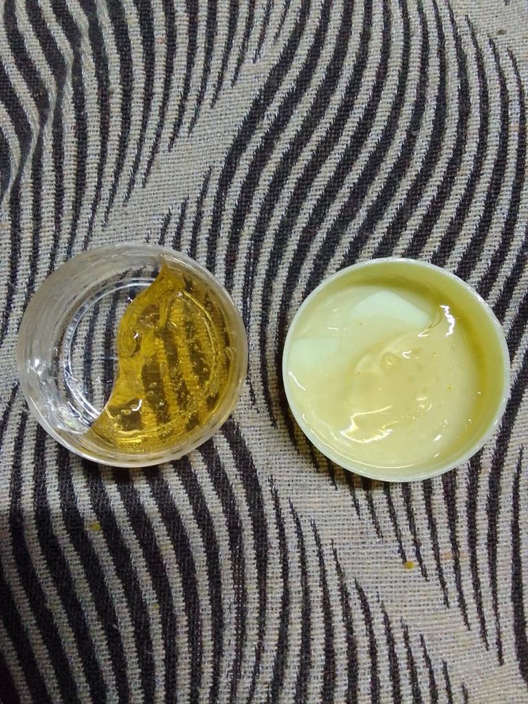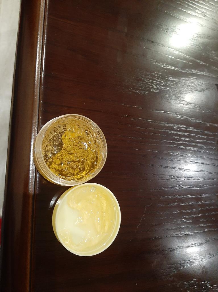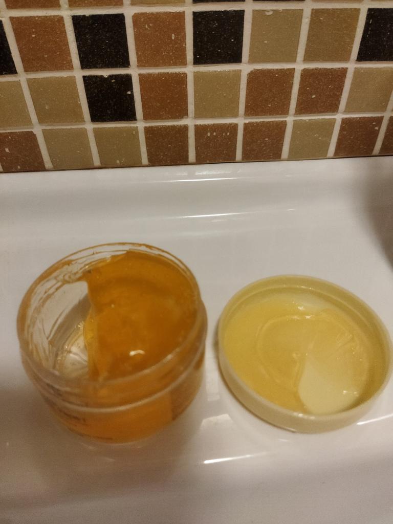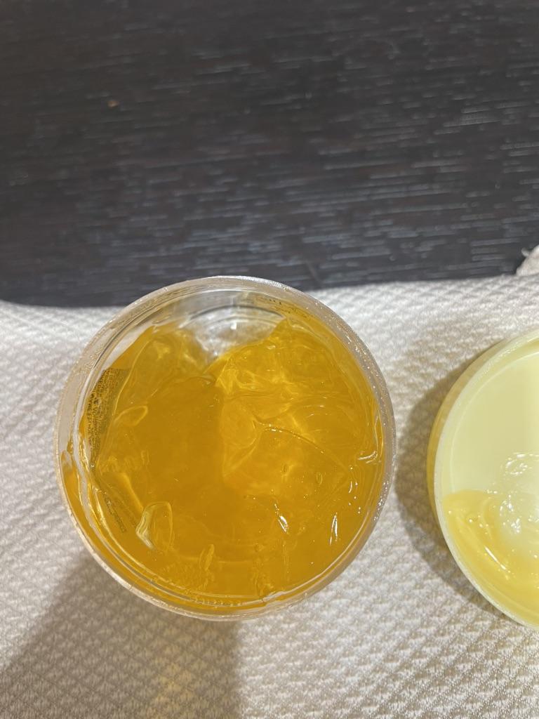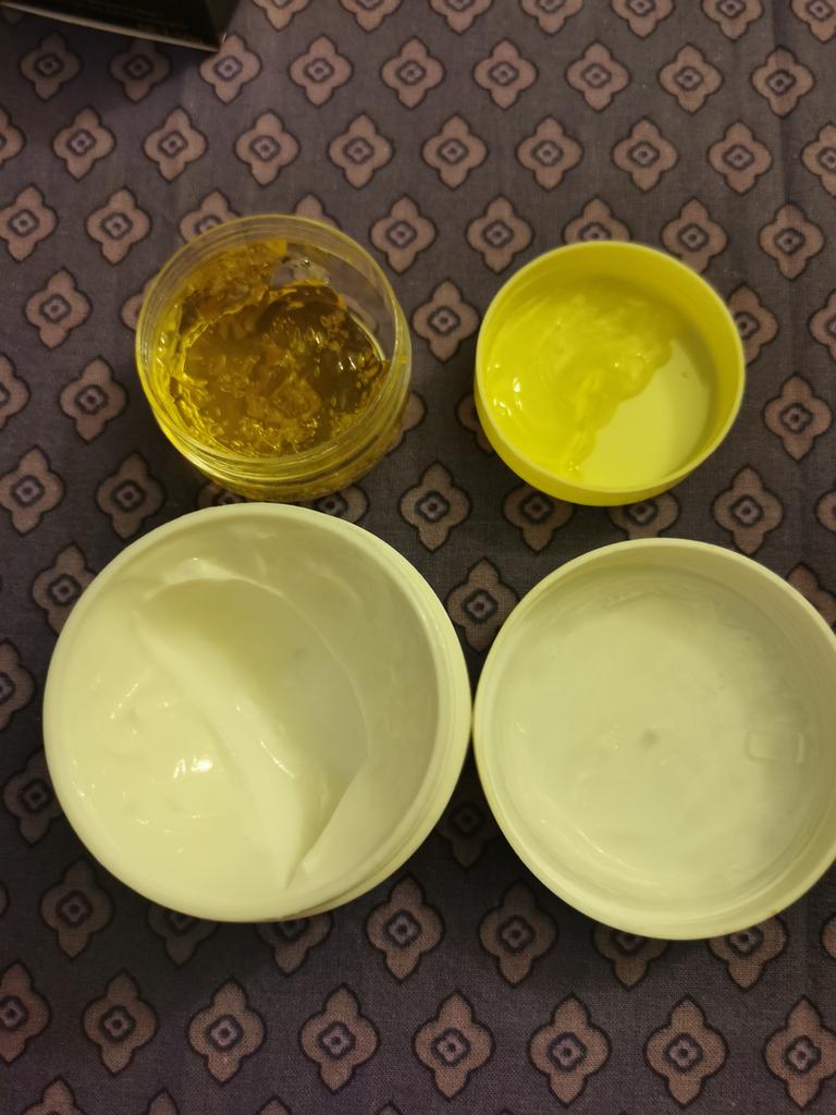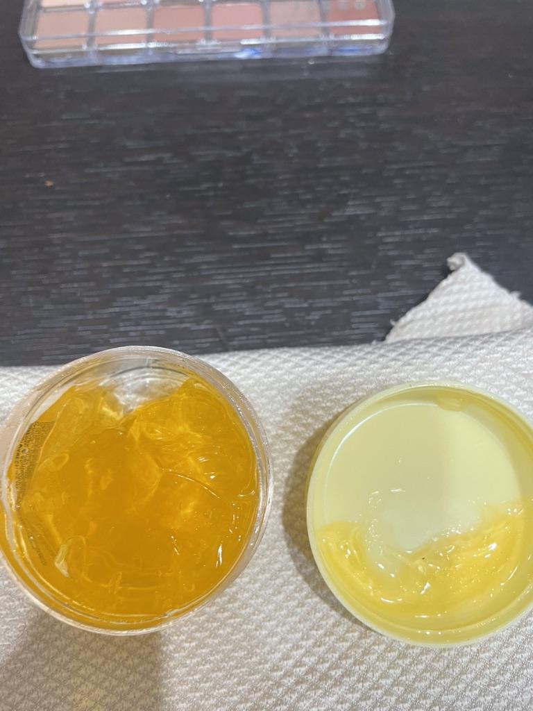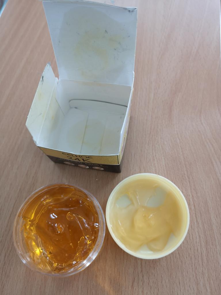 Nothing! A transparent jar with yellowish jelly and a white tube with “cream”