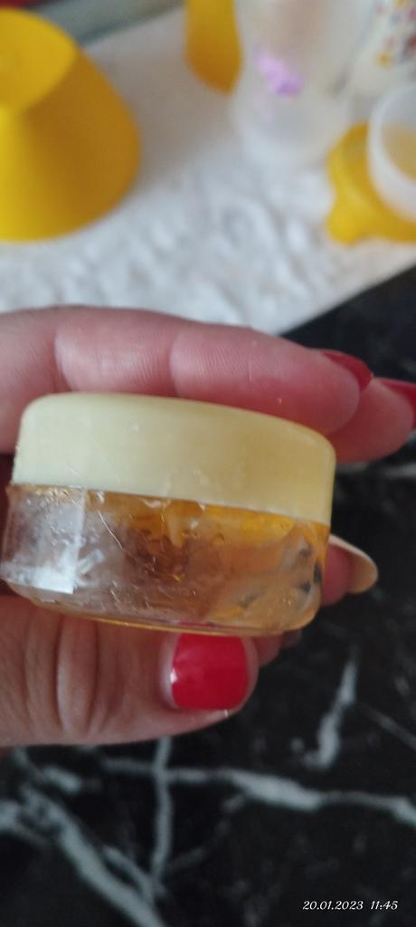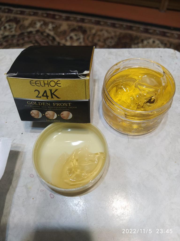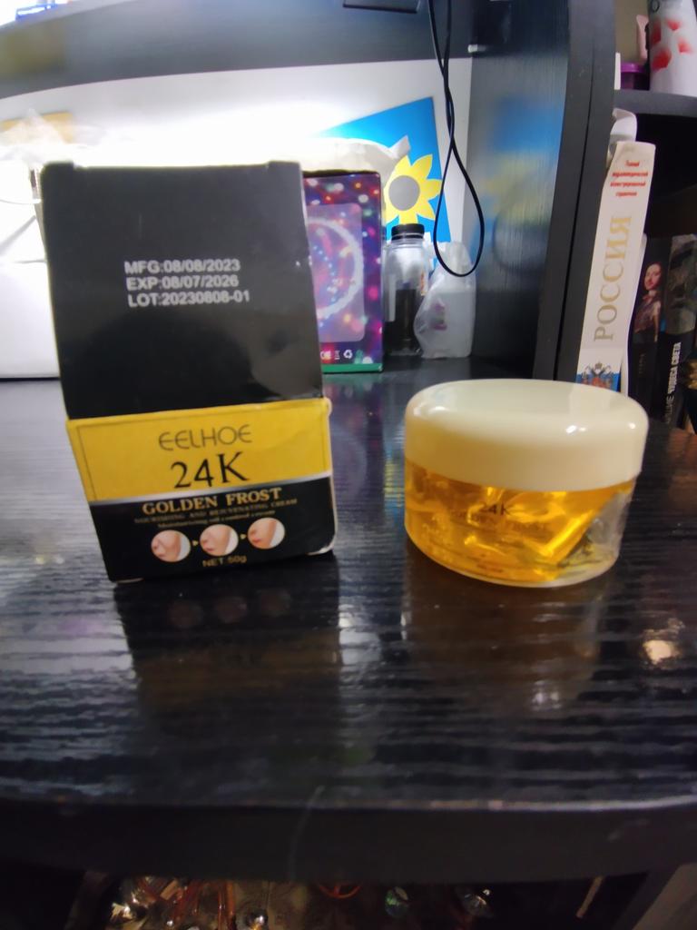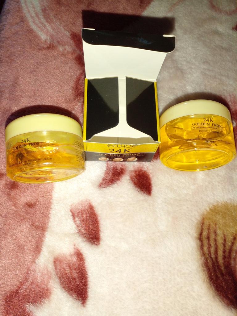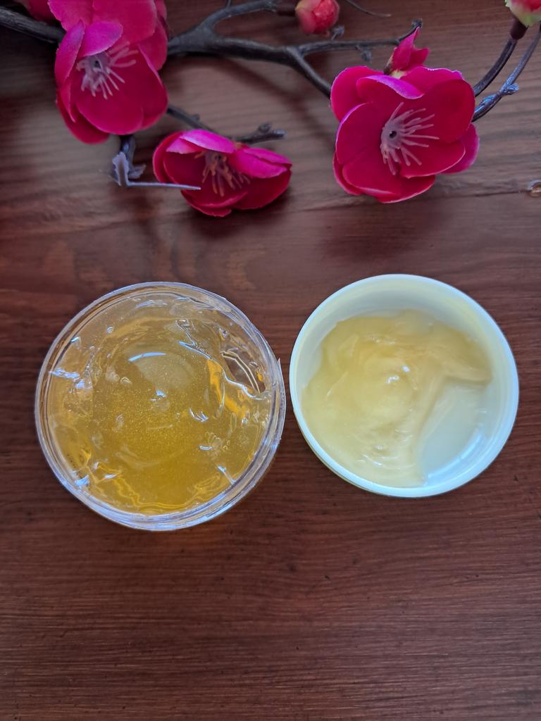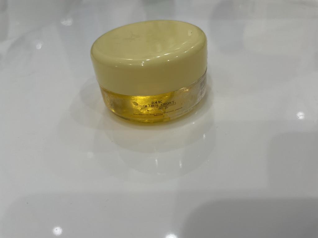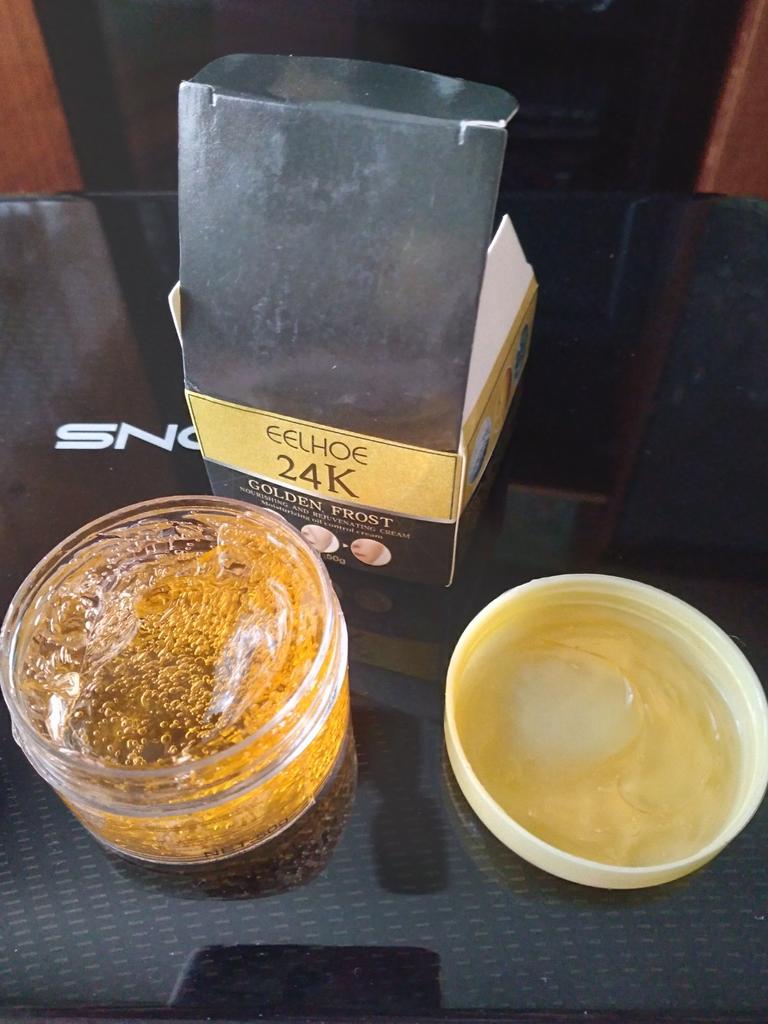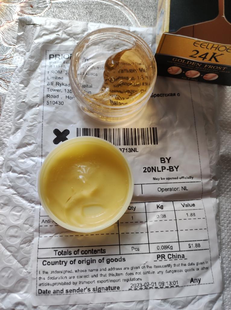 Nothing! A transparent jar with yellowish jelly and a white tube with “cream”