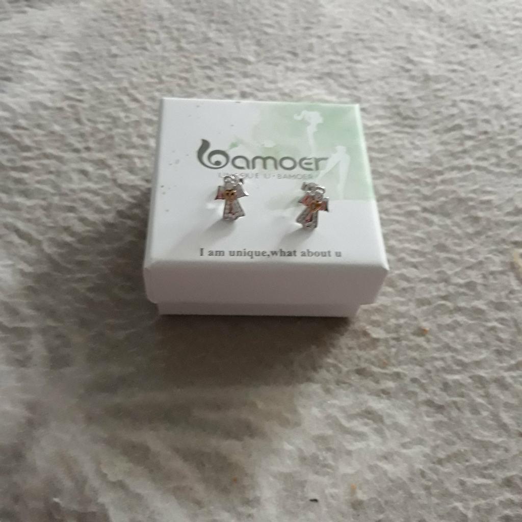 BAMOER Hot Sale Genuine 925 Sterling Silver Guardian Angel Exquisite Stud Earrings for Women Fashion