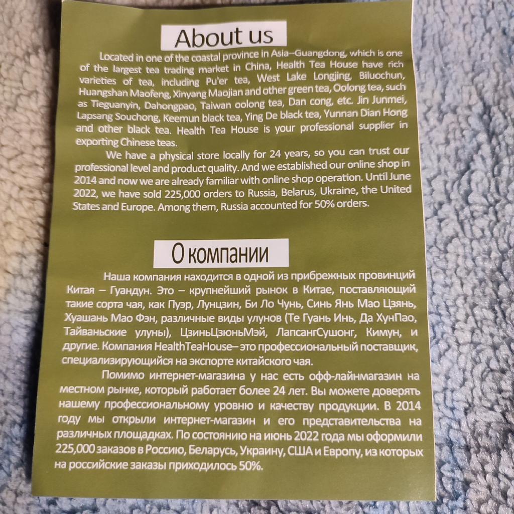 I love this tea, the aroma and taste is complex, fresh, with notes of prunes, pleasant. The color of the drink is reddish brown. Tones, refreshes, delicious)) thanks to the store!!👍👍