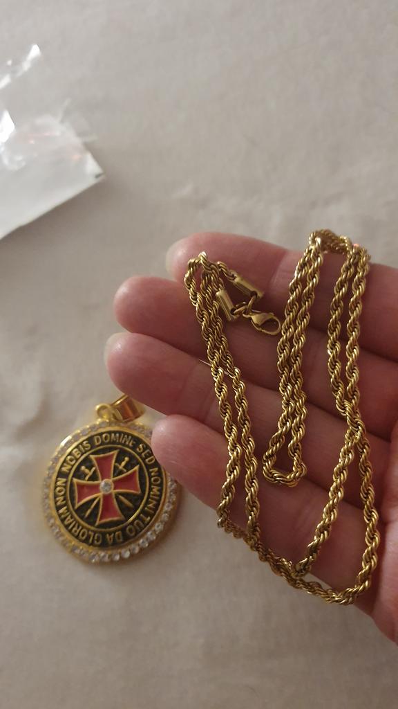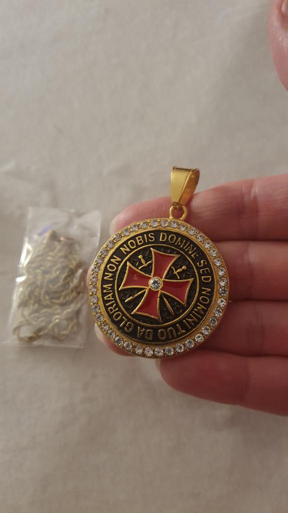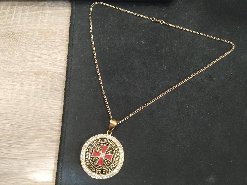 Hip Hop Knights Templar Iron Cross Pendant Necklace Cubic Zirconia Stainless Steel Necklace