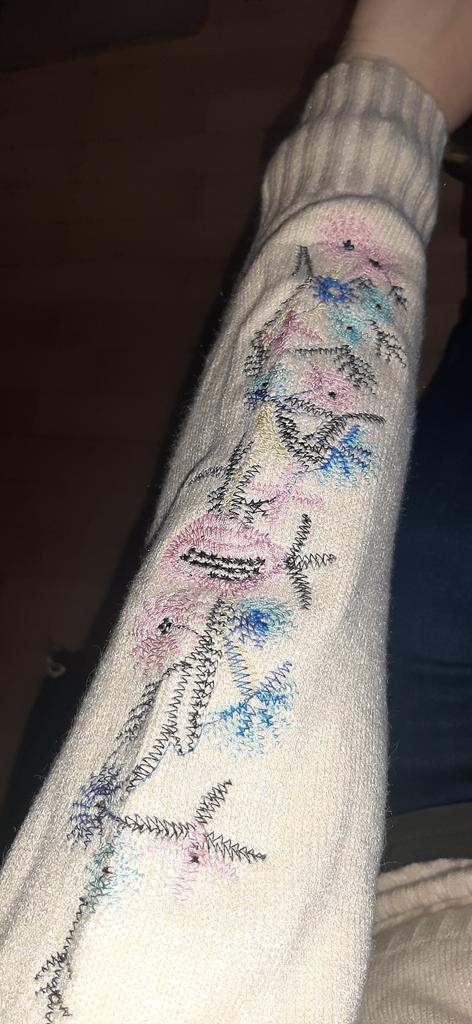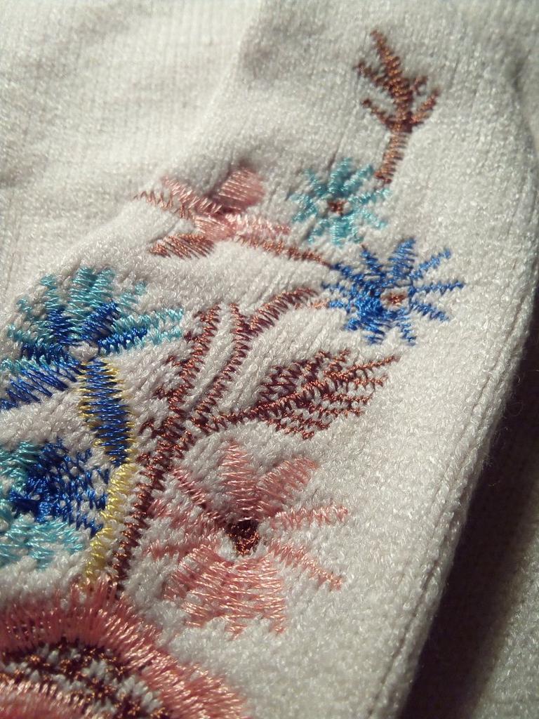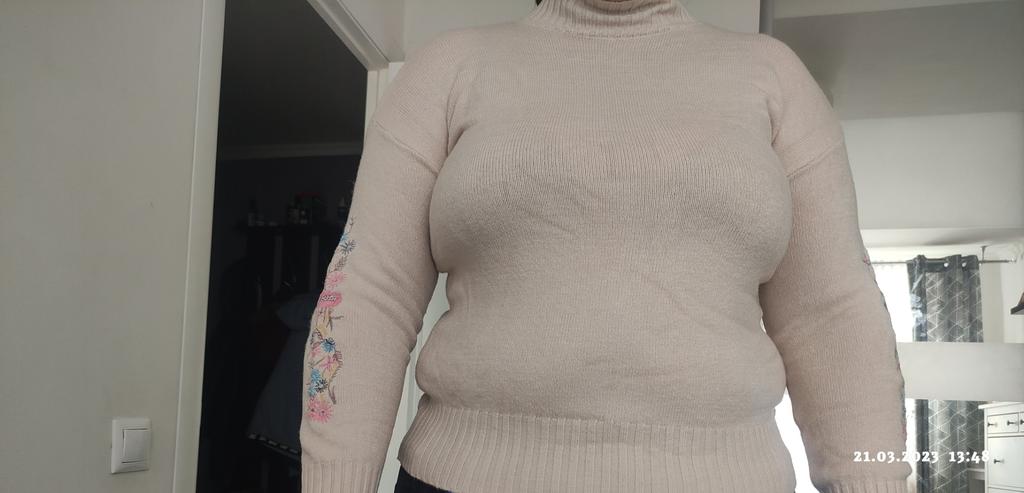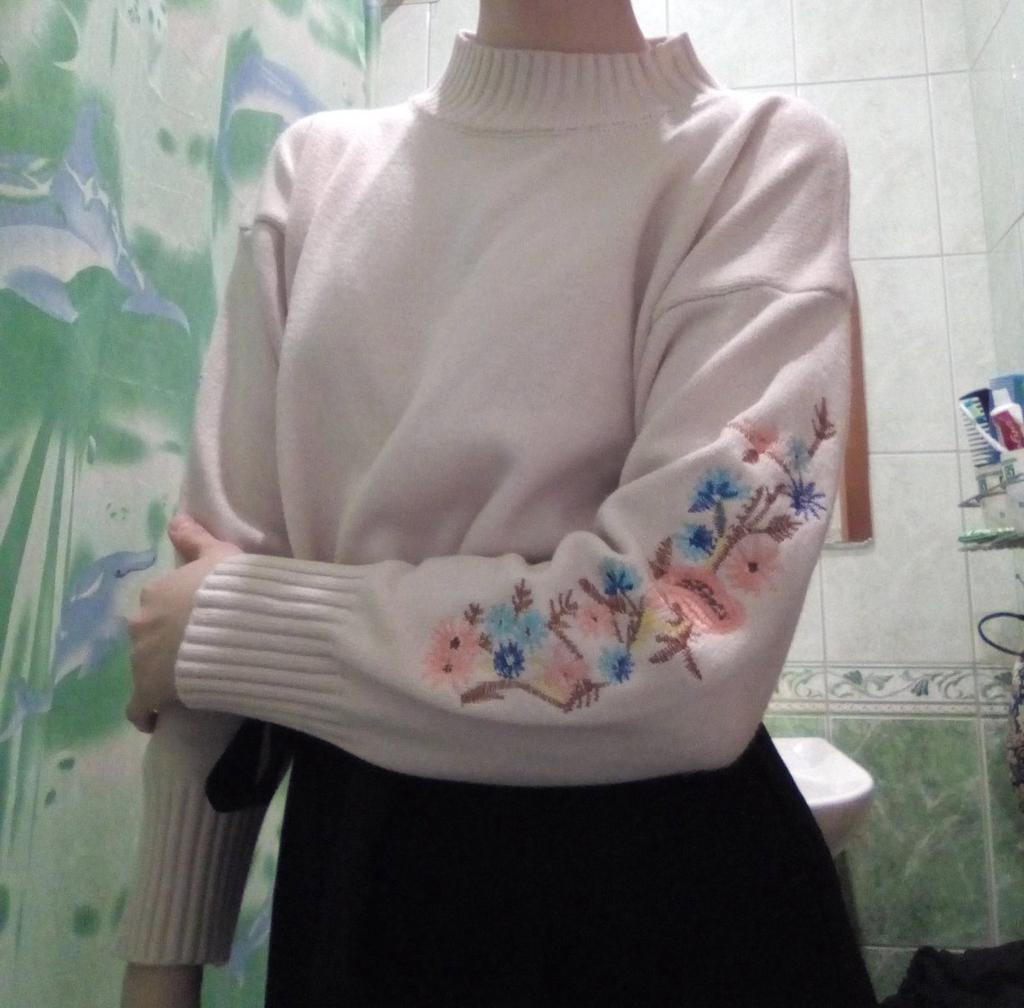 I received this sweater today. Despite the fact that she chose the size according to the dimensional grid, it turned out to be too small. Take at least a larger size. Pleasant to the body, warm, but the embroidery is kind of pale. To be honest, I'm a little disappointed.