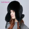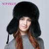 SOMALER Real Fox Fur Hat Earflap Thick Warm Winter Hats For Women Russian Bomber Hats Genuine Leather Caps