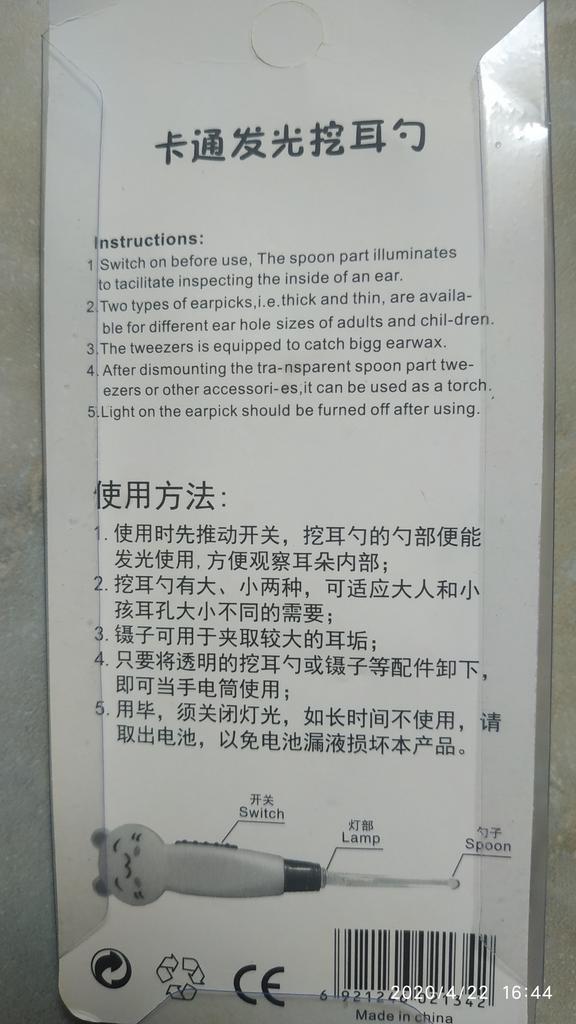 Cartoon Animals LED Light Detachable 3x Ear-pick Wax Remover Pick Earpick Clean Ears