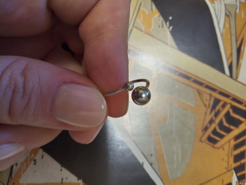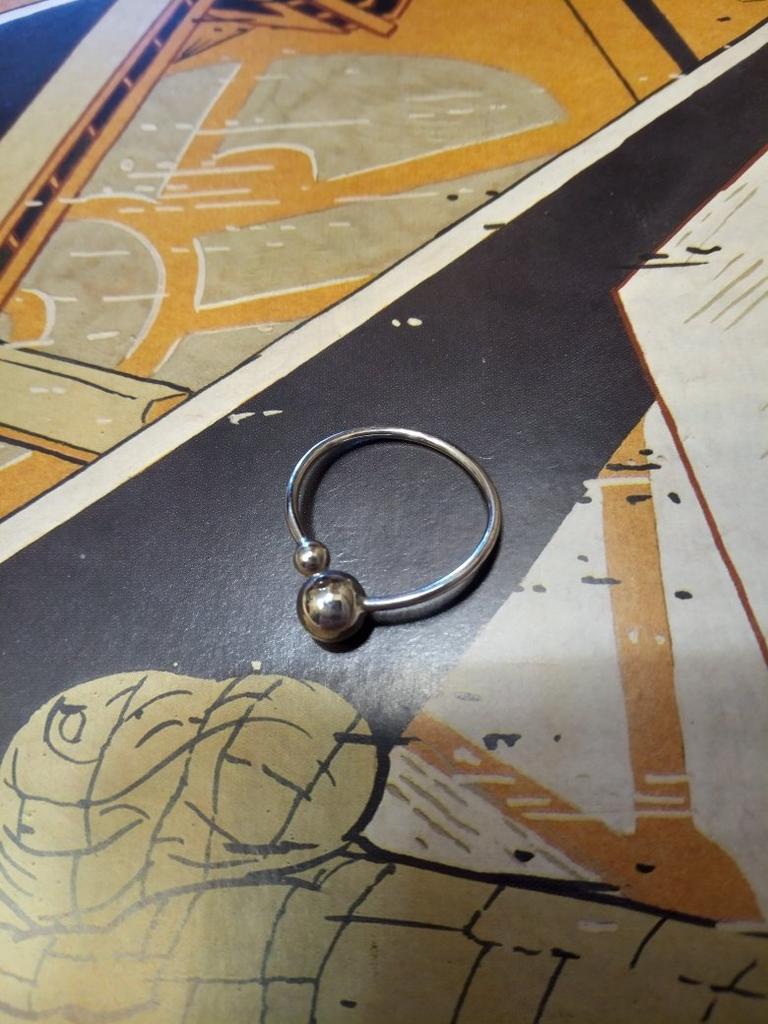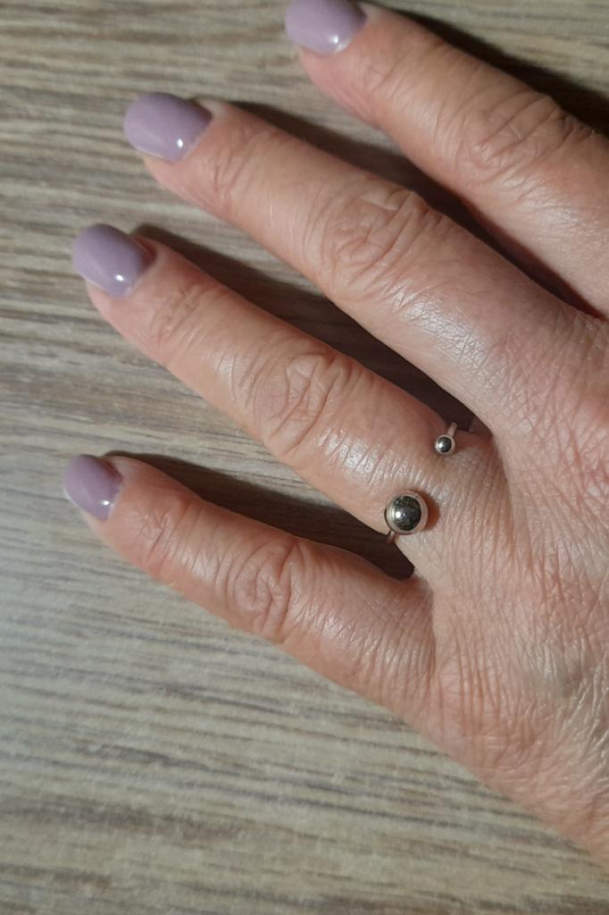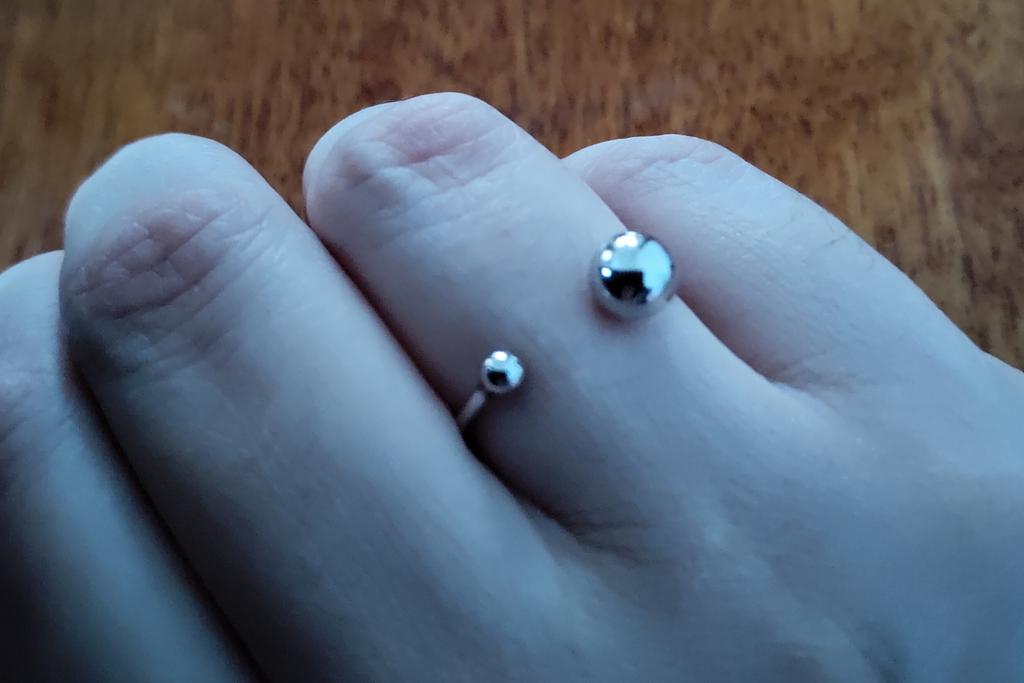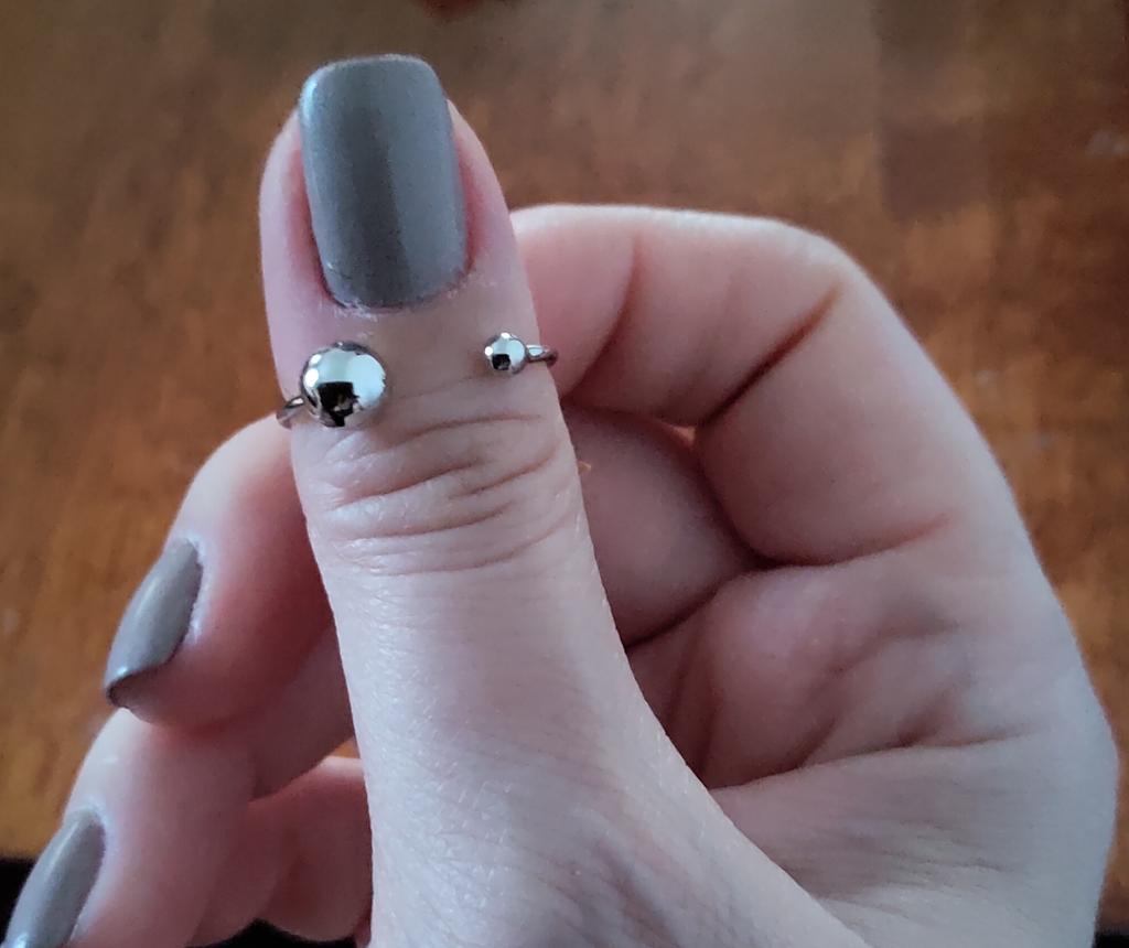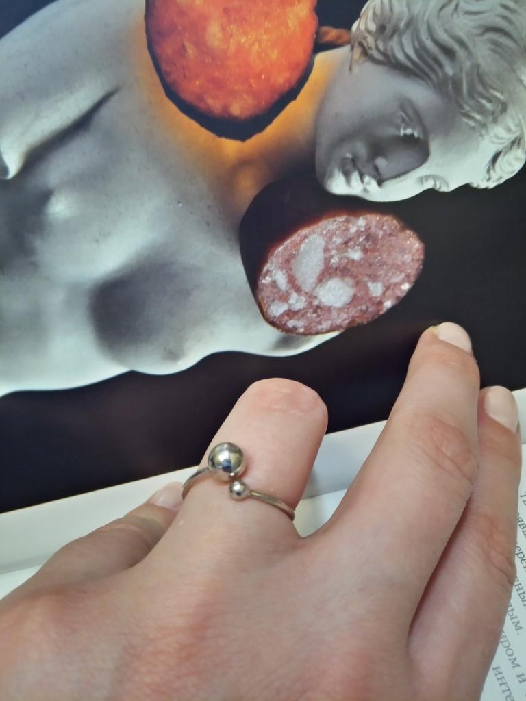 Silver ring with flexible size 🍉 Minimalist and delicate decoration. The S925 sample is engraved on the inside (this is the standard marking for sterling silver products in China). The metal is soft, easily acquires the desired shape. There is rhodium coating. Quick delivery. In general, I like the ring, I've been wearing it for two weeks and I don't take it off 😊 At first I wore it on my index finger because I wanted the gap between the balls to be noticeable. During operation, it was determined that this is not for me, because I constantly cling to my hair or clothes with these logs. ⚠️ I think for fingers larger than 17.5 rings will not look good, will be small and very stretched.