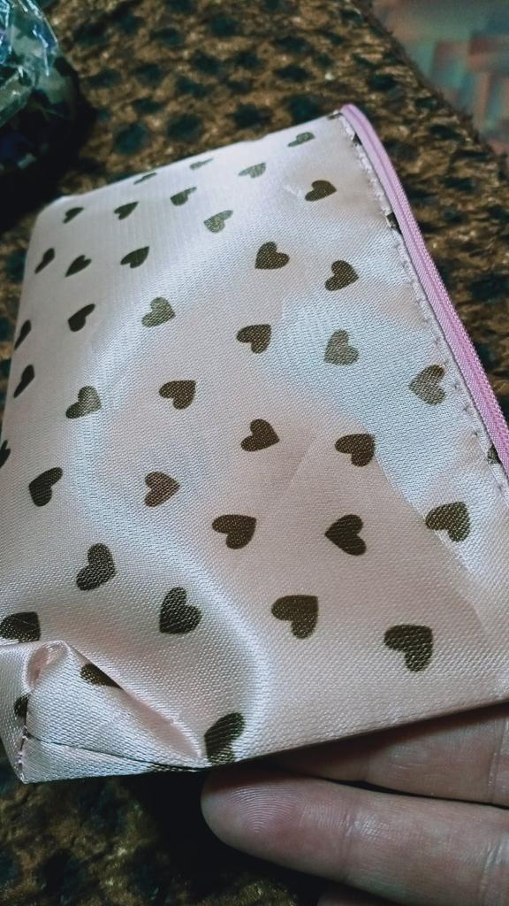The cosmetic bag is pretty, but small. Although it's fine for me.