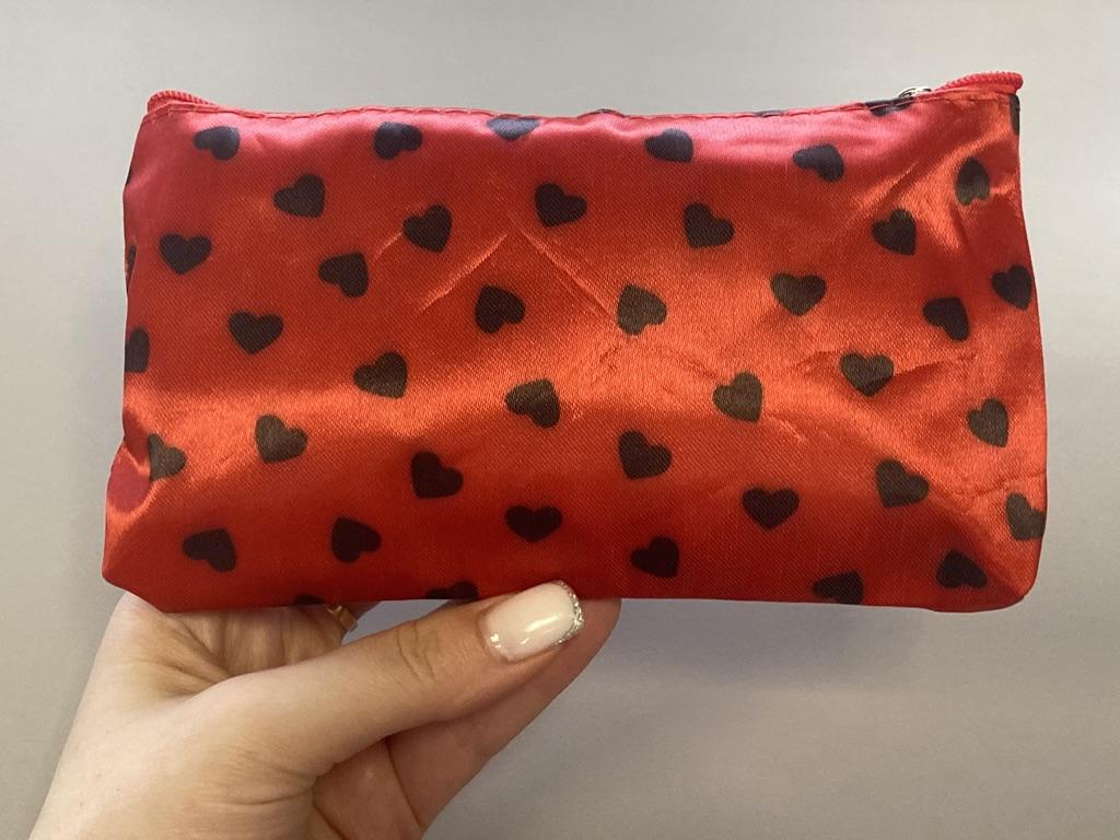 I took it not as a cosmetic bag, but as a wallet for cash; an ordinary wallet does not fit into a small flat handbag, but this one does just that; bank cards and a phone get along in a small area.