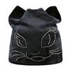 Winter Beanie Hats For Women Cut Hat With Rhinestone Cat Pattern Beanie with Ear Velvet Hat For Girl