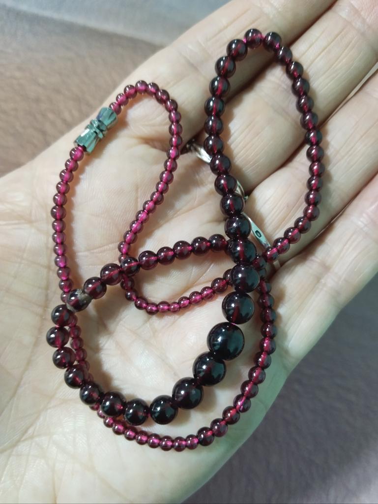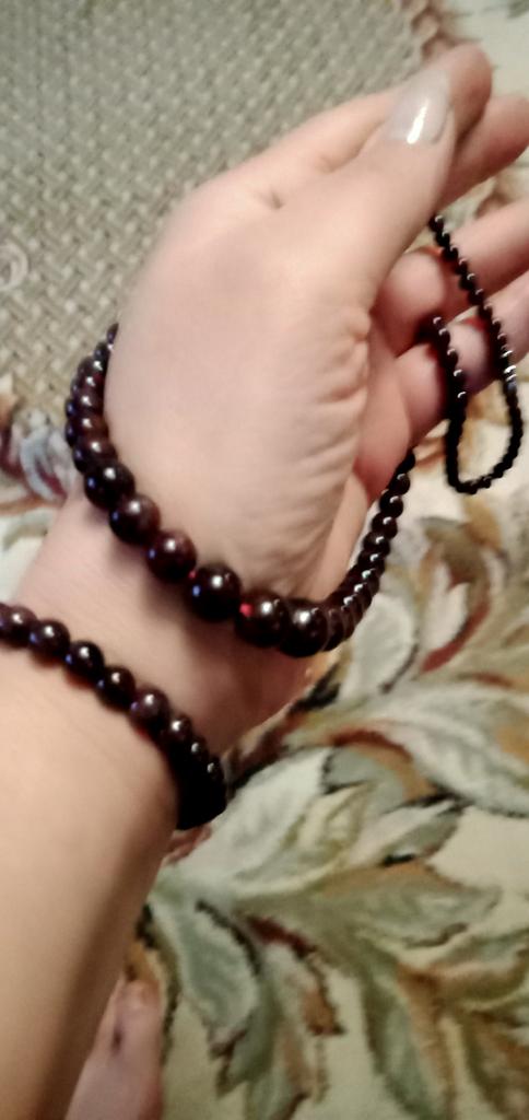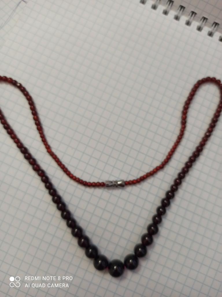 Delicate beads made of natural garnet, glow cherry-colored inside, beautiful, but the beads are 4 and 6 mm, that is, small.