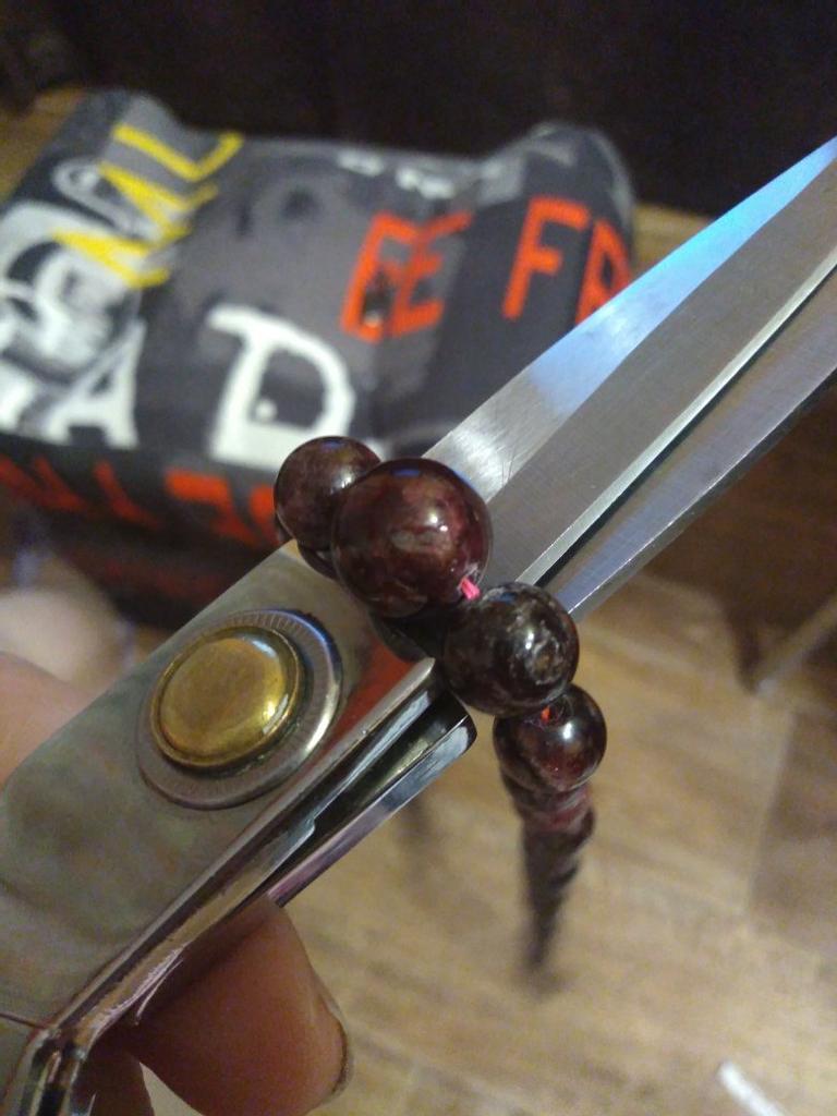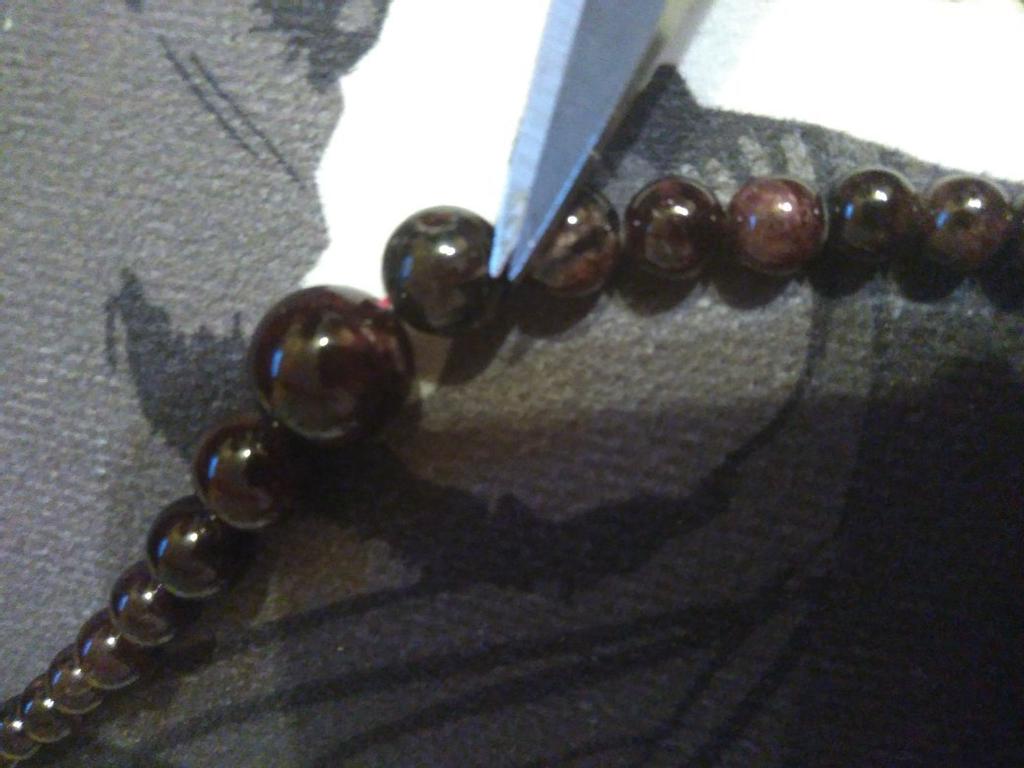 The beads are carelessly assembled - about 5 mm of red thread is visible (not enough beads?)