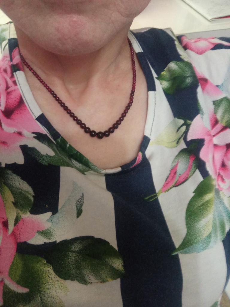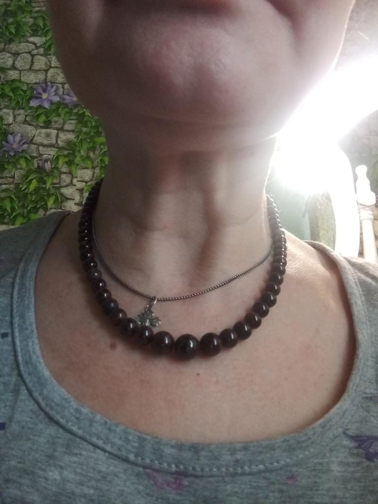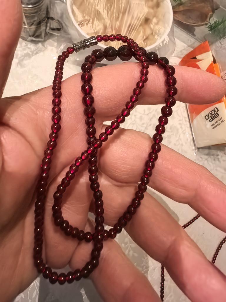 Disappointed with the beads, not very suitable for large women. More like a double bracelet. The beads are very small. The beads are beautiful, look gorgeous on a young thin neck.