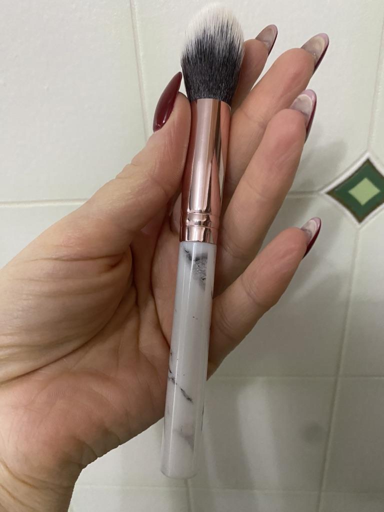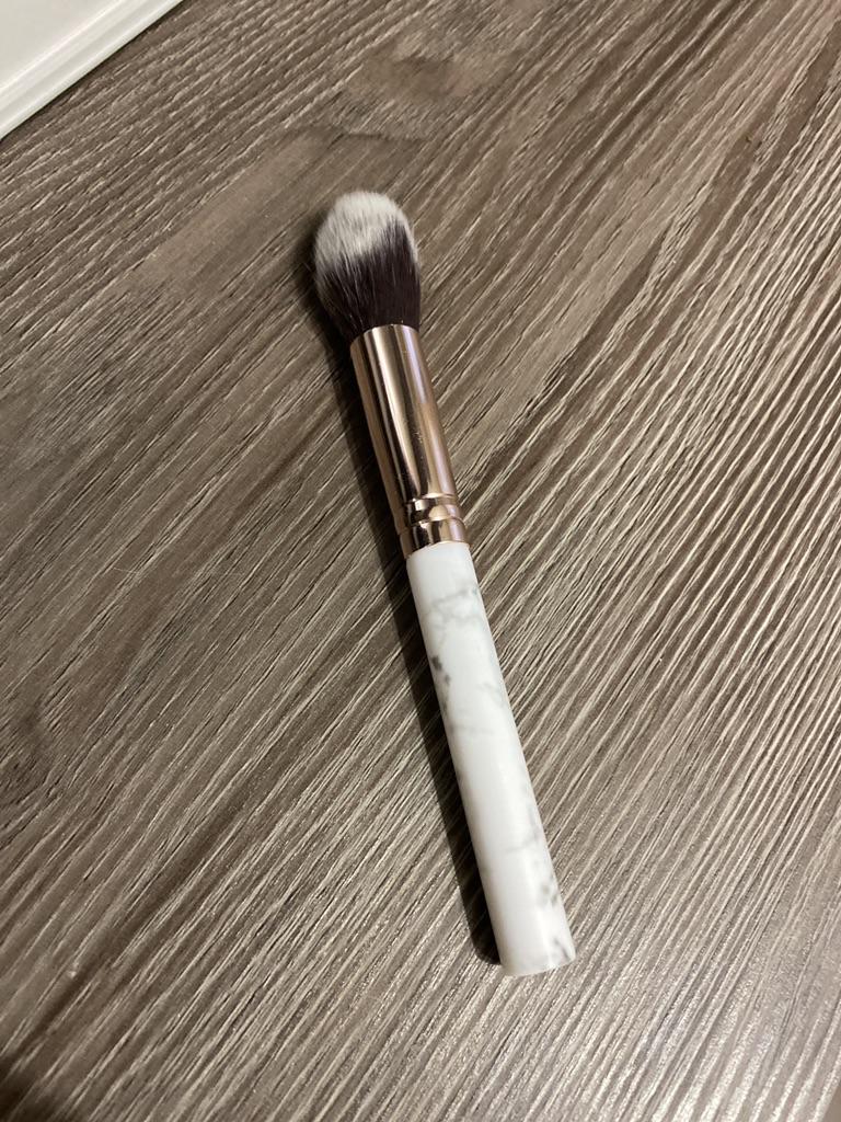 The brush is as pictured, soft, perfect for applying foundation, powder or bronzer