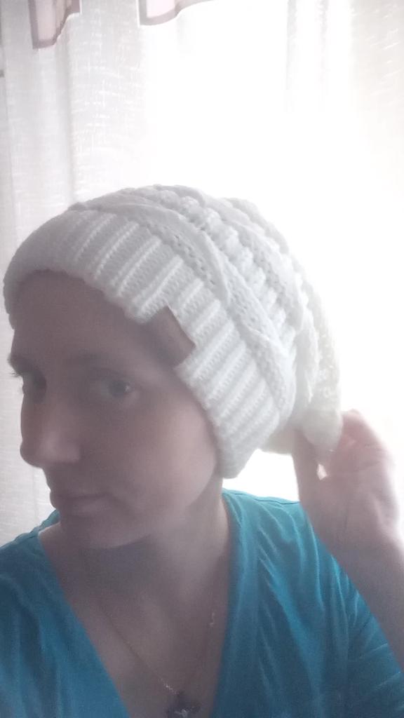 I really liked the hat. The quality is good. The hat is warm, although without a lining and not double, only the lapel is double. It is coarse-knit, dense, elastic, will not stretch. Acrylic cap, very soft, pleasant to the touch. No extraneous smell. The white color is not snow-white, but has a yellowish tint. I liked the style. The cap is quite deep. Very satisfied. Thanks to the seller ❤️ and thanks to Joom ❤️.