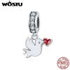 WOSTU Love Letter Pigeon Dangle Charm 925 Sterling Silver Heart Beads Fit Original Bracelet Pendant