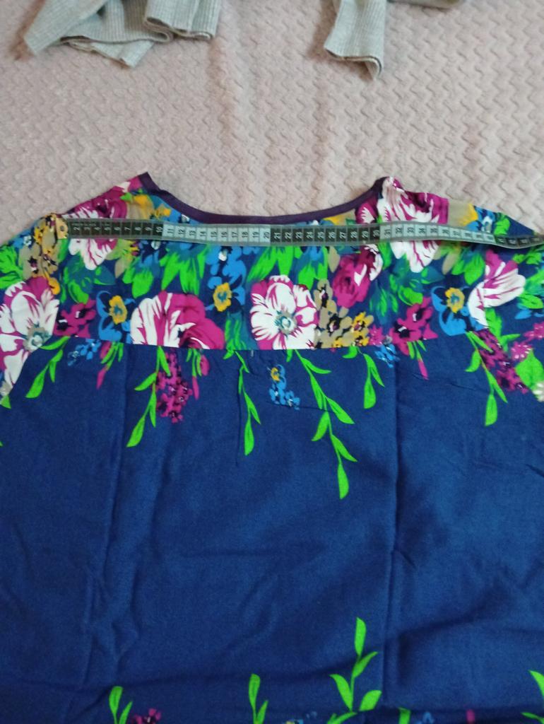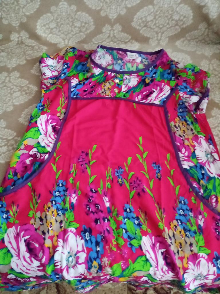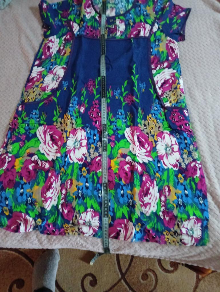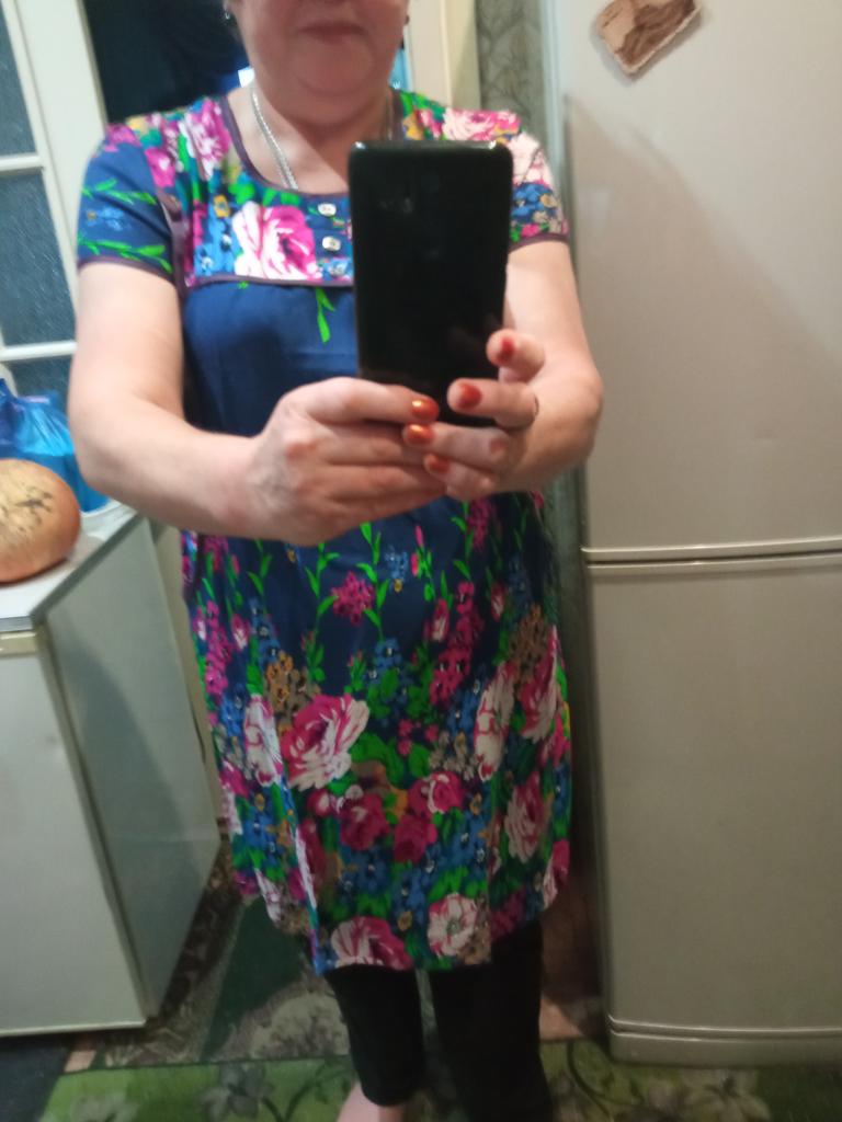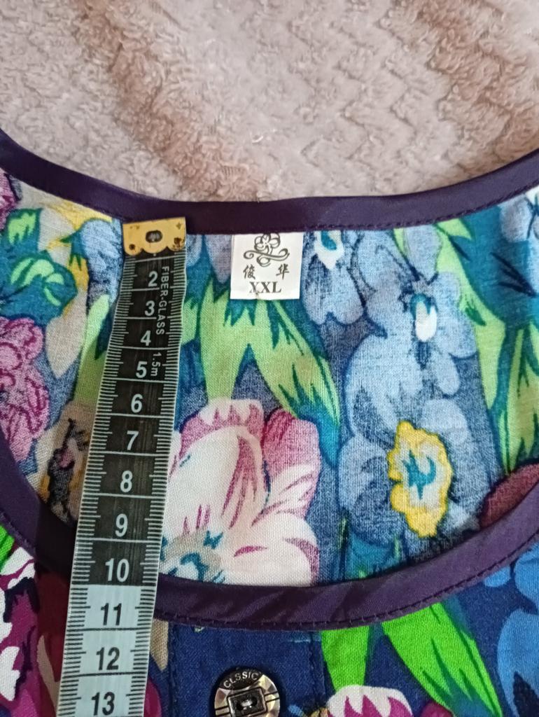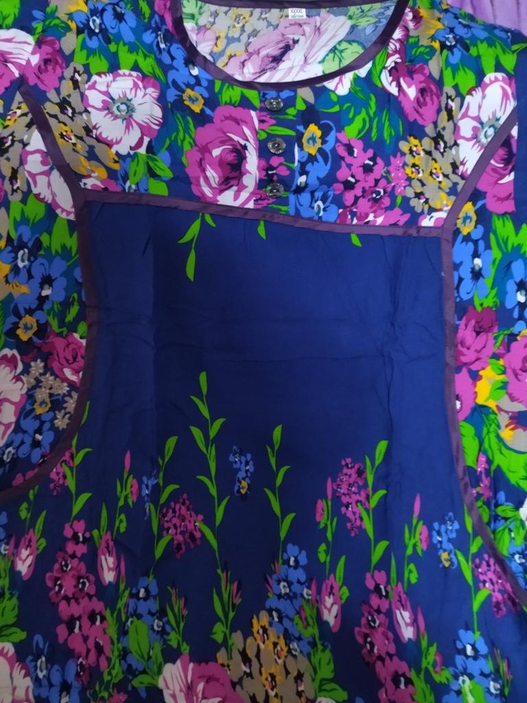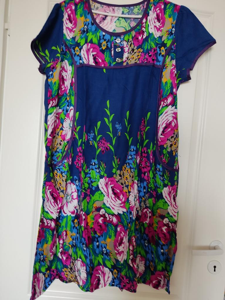 Nice summer dress, nice fabric, neatly sewn. Size xxxxl fits well on our size 50-52. I recommend to buy