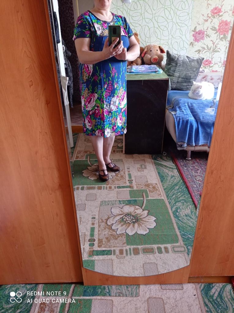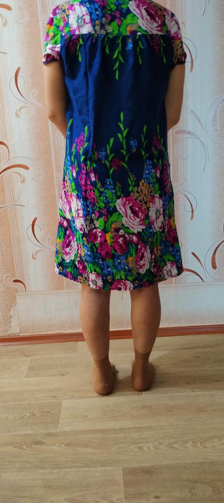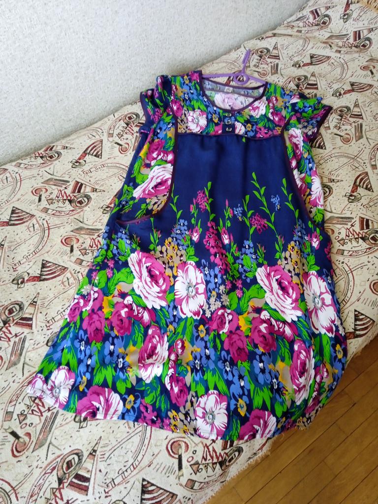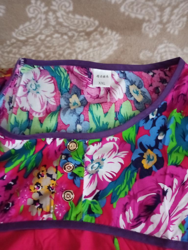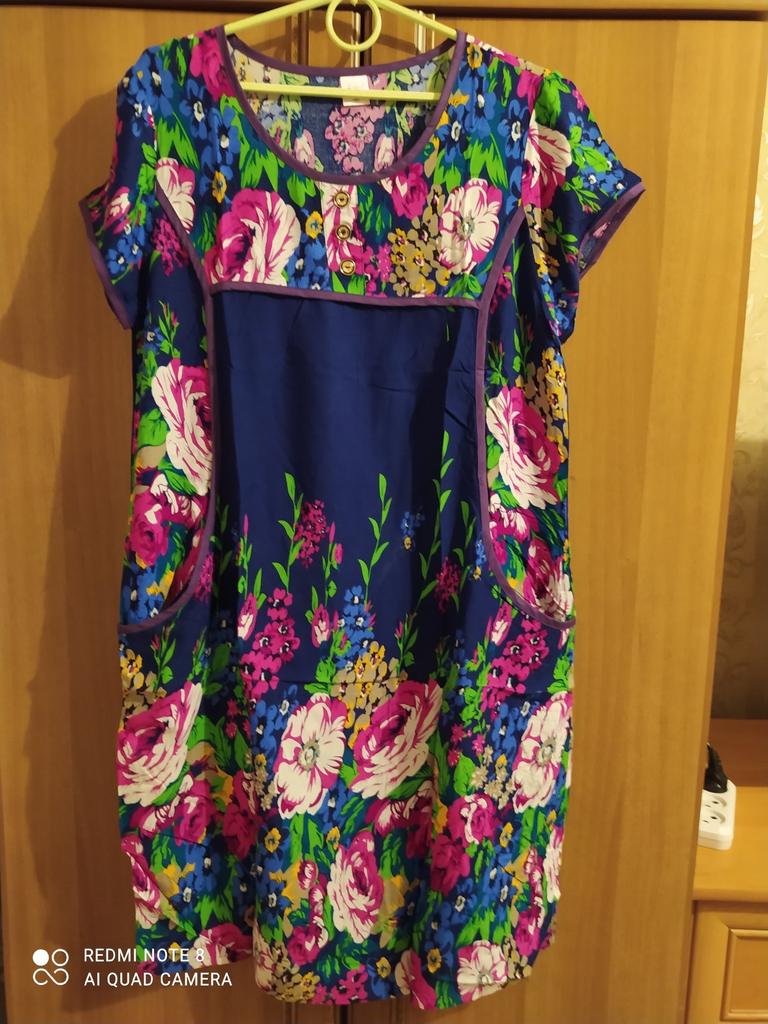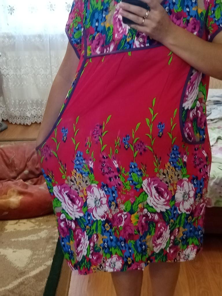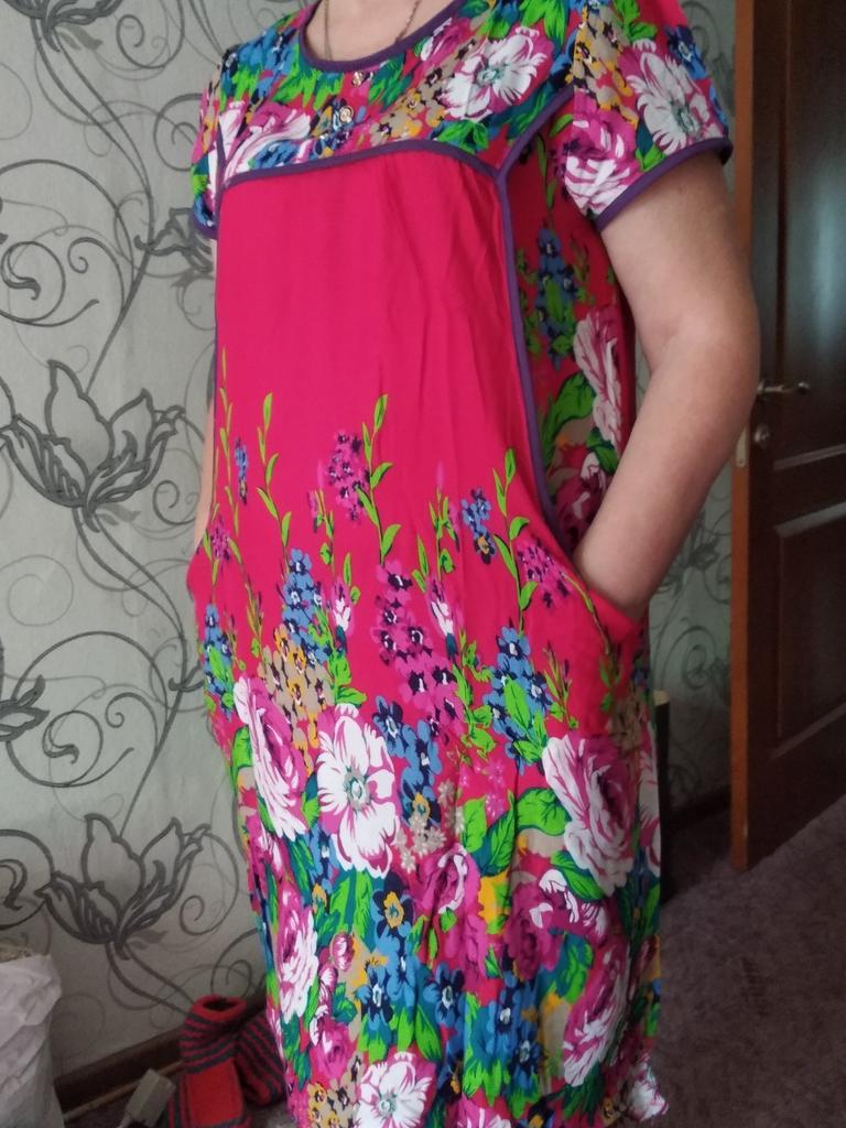 The dress is simple, homemade pleasant material like a staple, the tailoring is neat. Size small 2xl, corresponds to size 48.