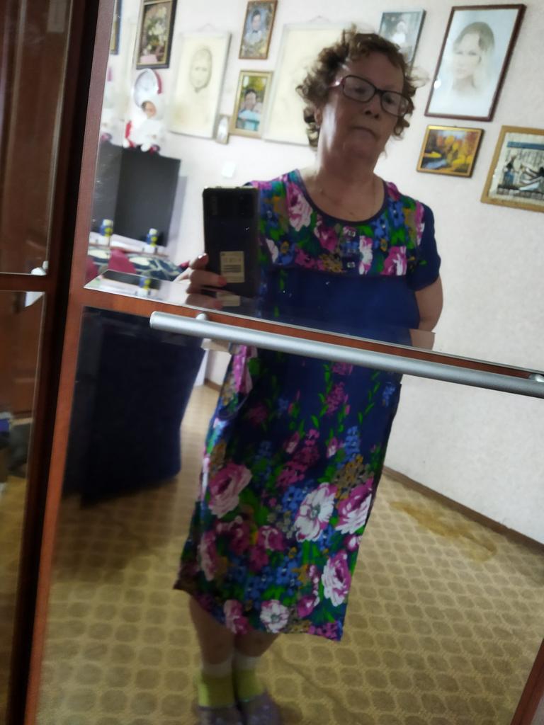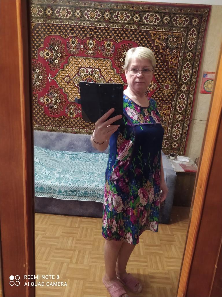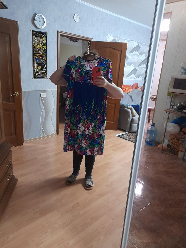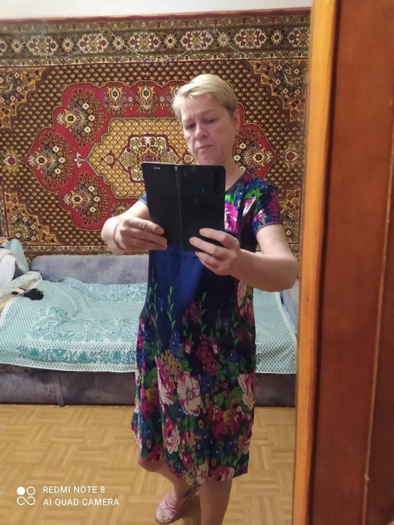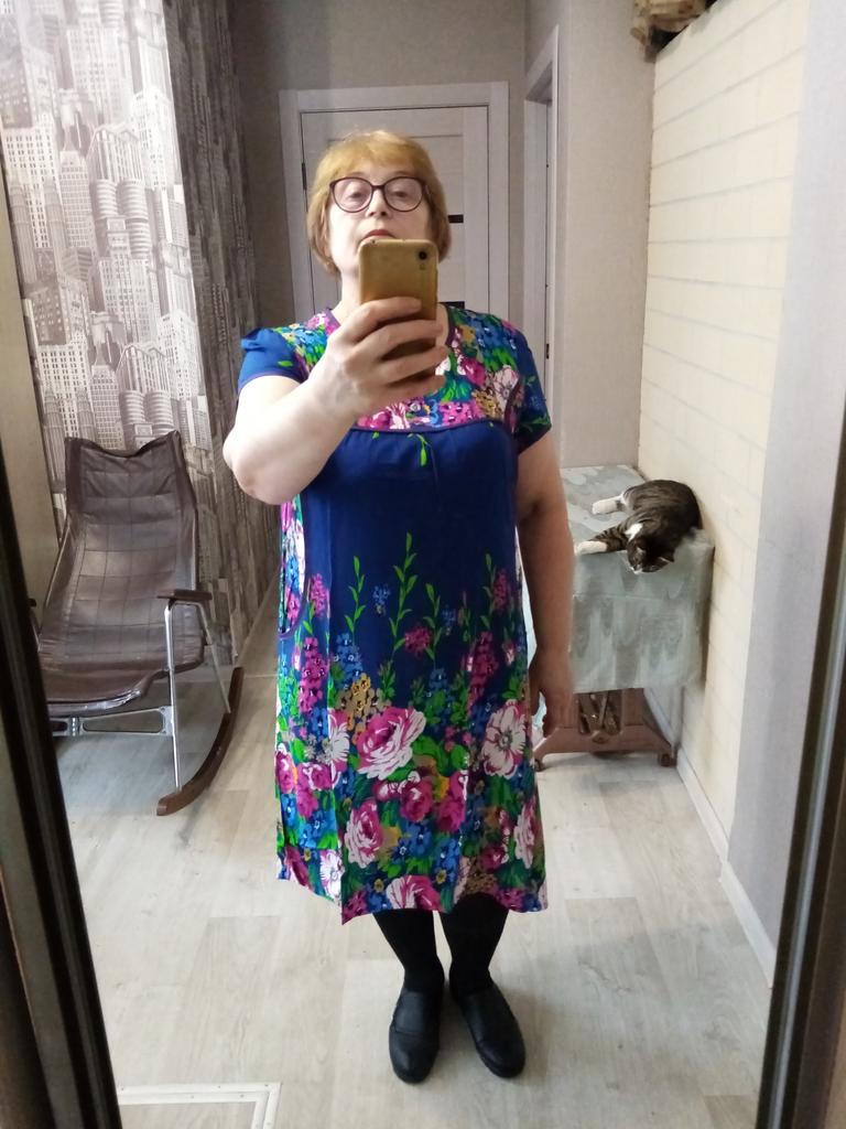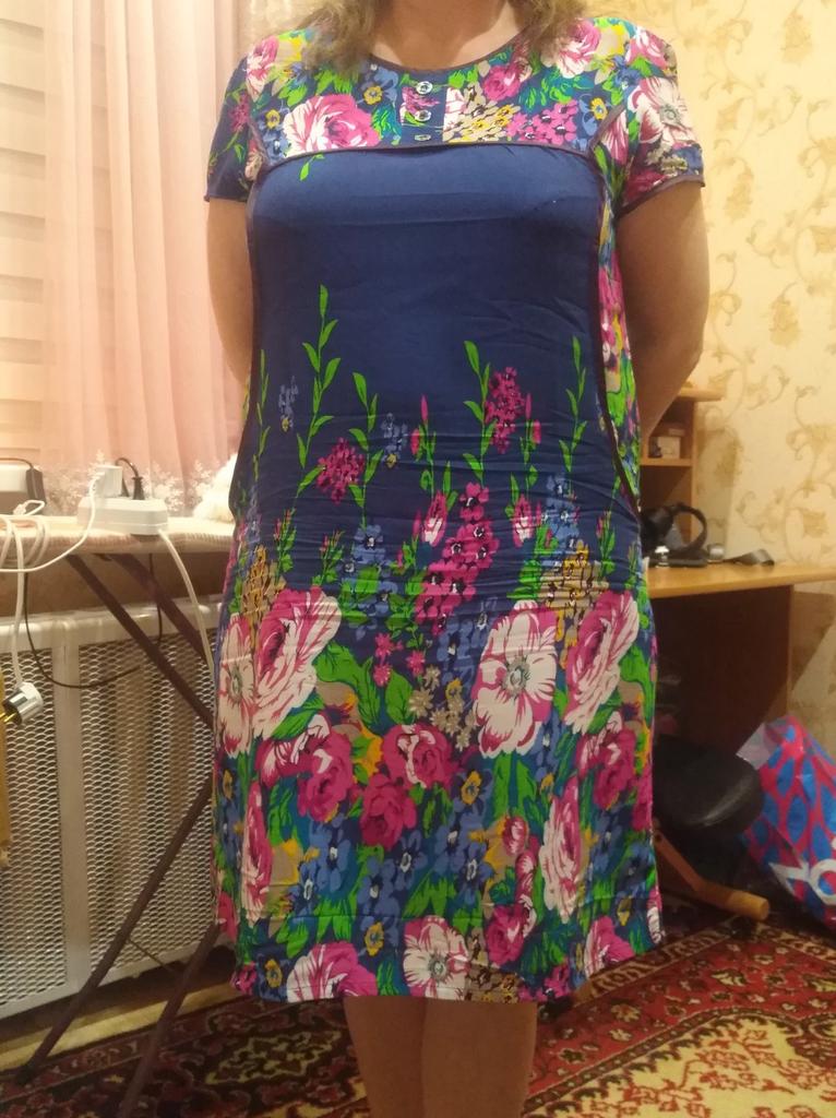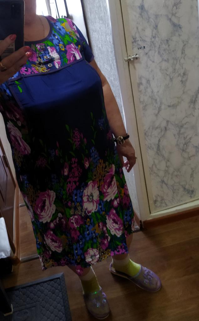 The dress is simple, homemade pleasant material like a staple, the tailoring is neat. Size small 2xl, corresponds to size 48.