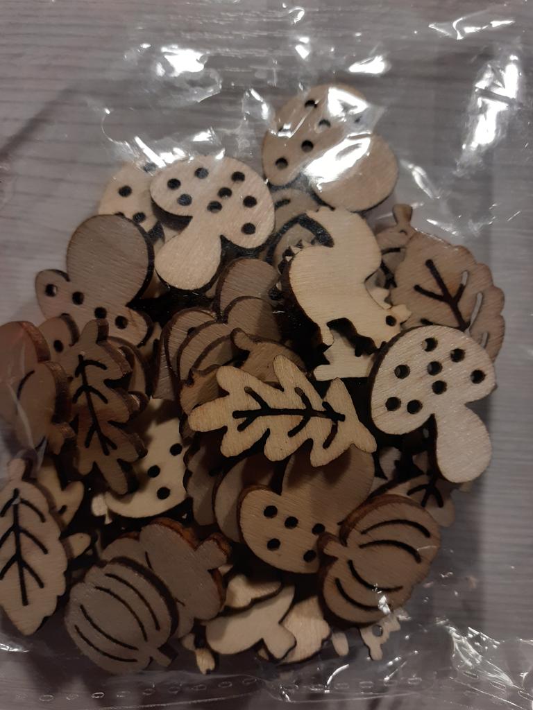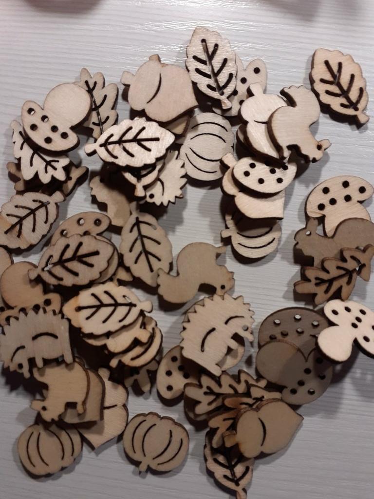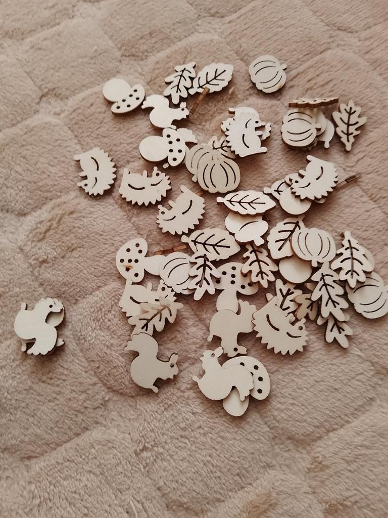50 Pcs Mixed Wooden Craft Squirrel Leaves Mushroom Shape Hedgehog Decoration