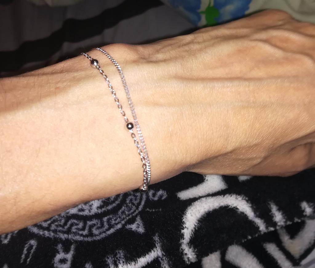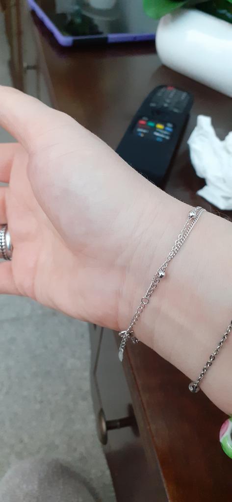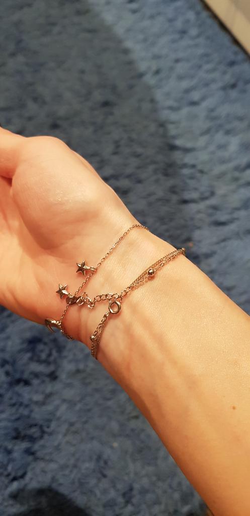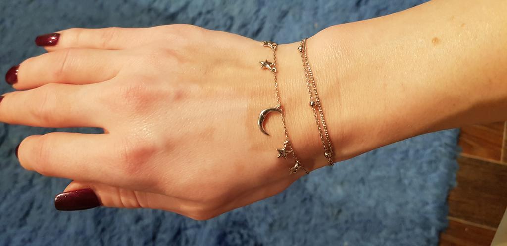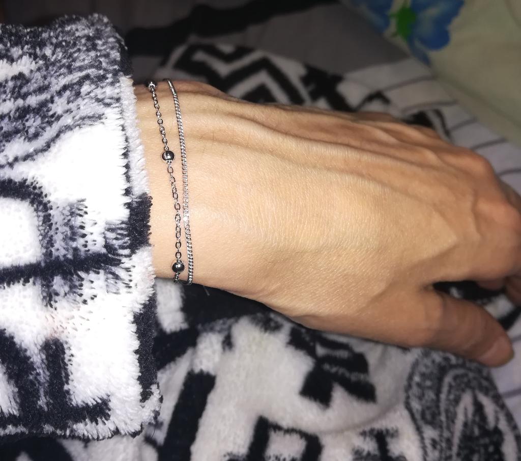 The bracelet is cool, delicate, thin. Thought it would be a little thicker. But it's so cool.)