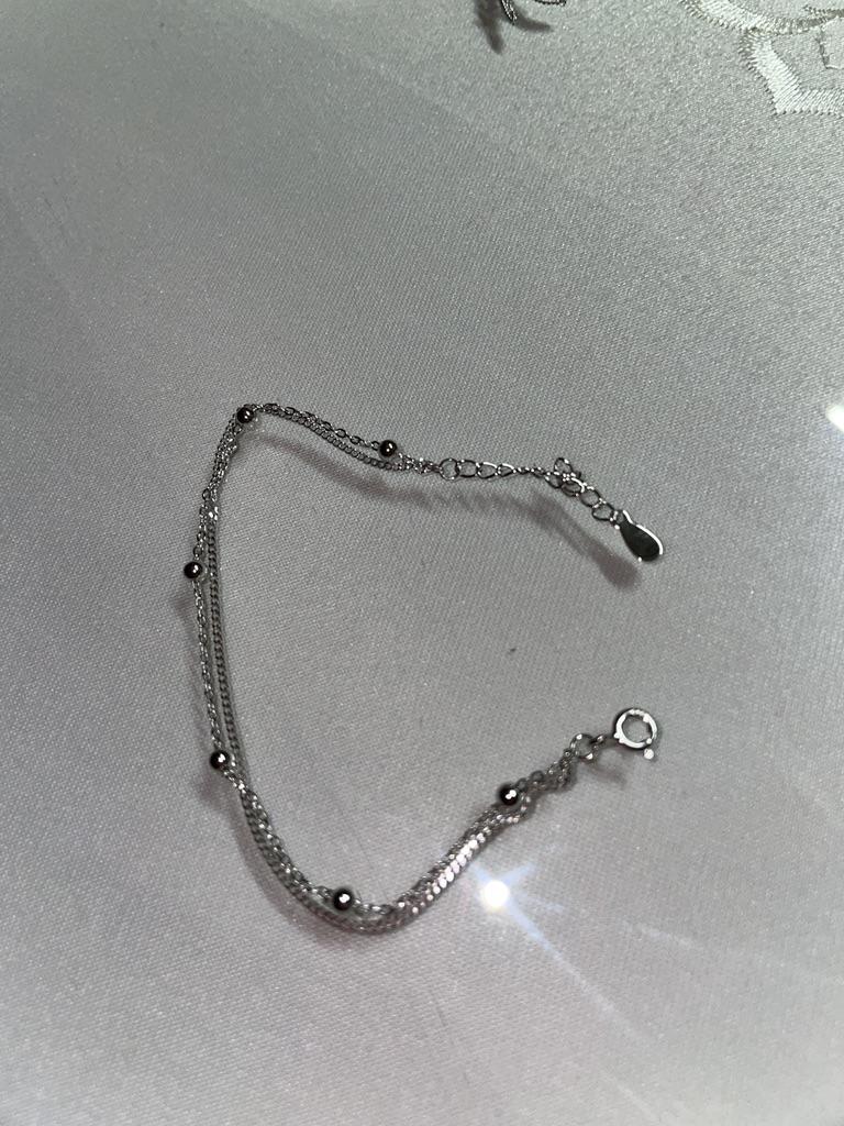 WOSTU Parallel Chains With Silver Bead Bracelets 925 Sterling Silver For Women Chain Link New Design