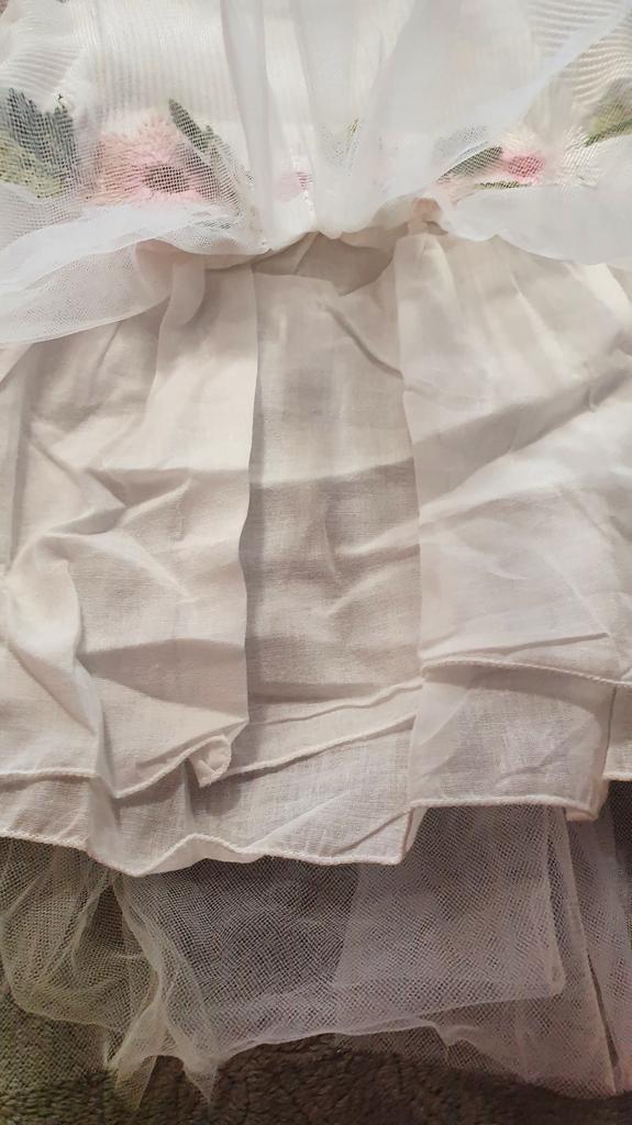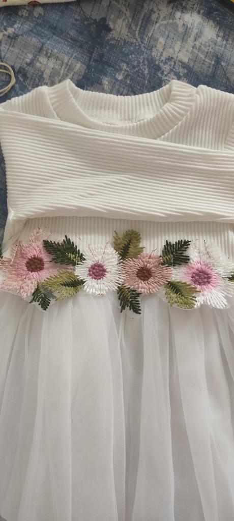 The dress is wonderful, the quality of the material is good, it was easy to iron, it was easy to wash and it remained perfect. Nothing unravels or unravels. For 1 year or 11kg it was ideal for us!