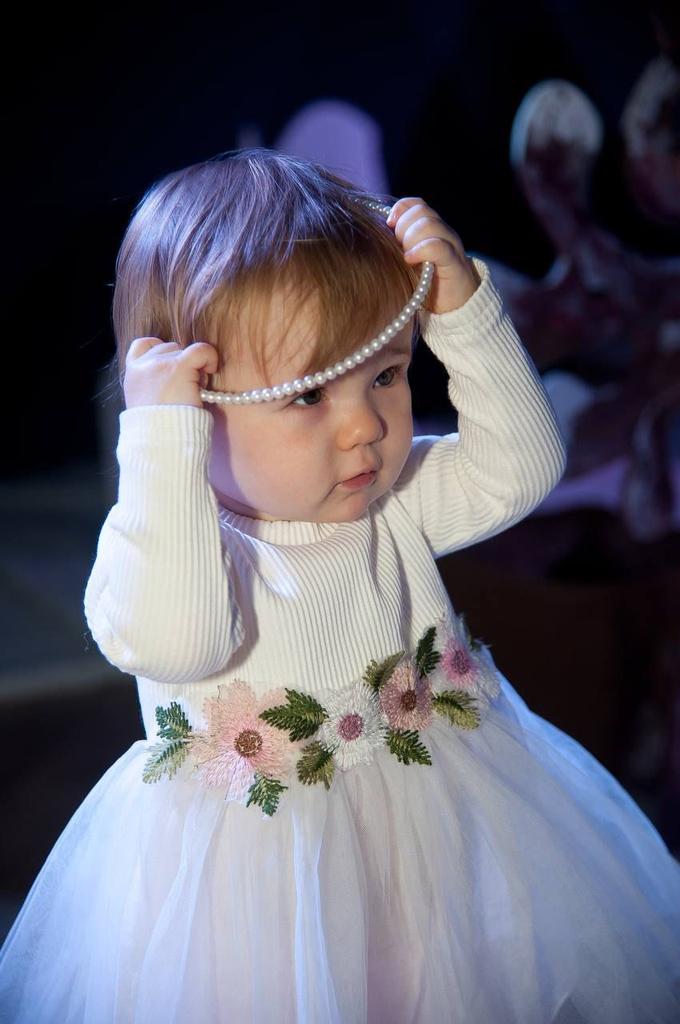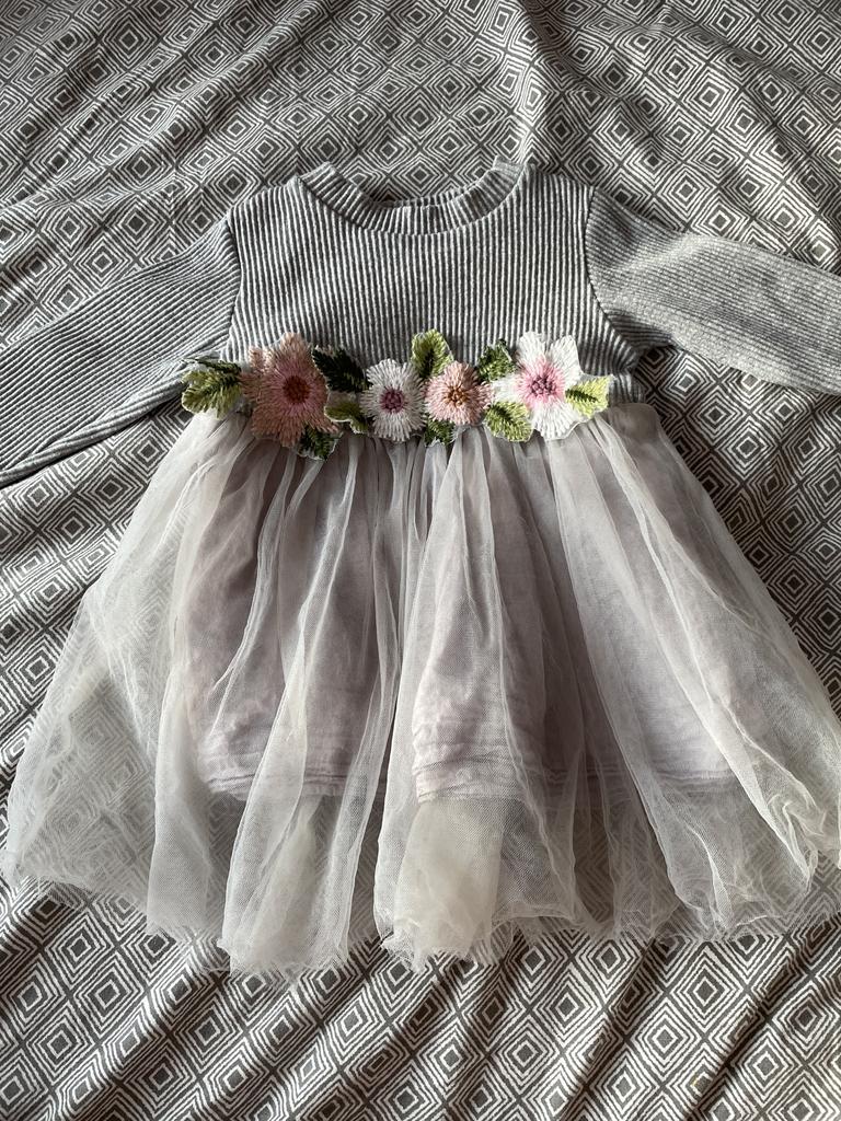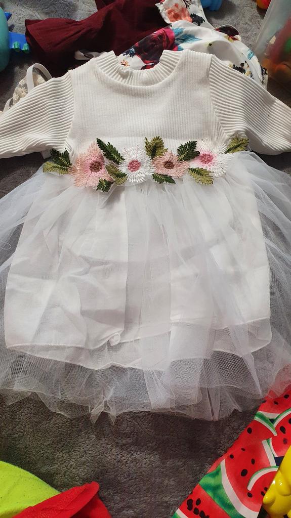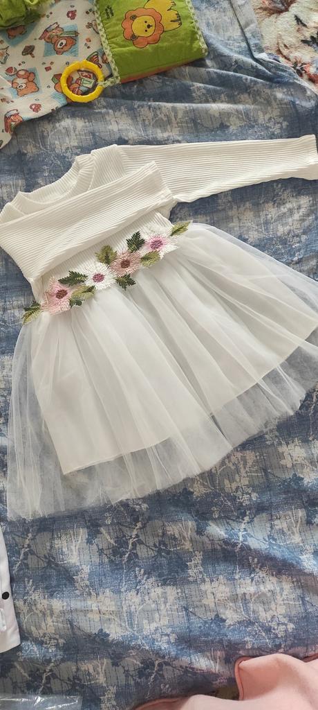 Wonderful dress, for 3 months it already fits, the sleeves are long