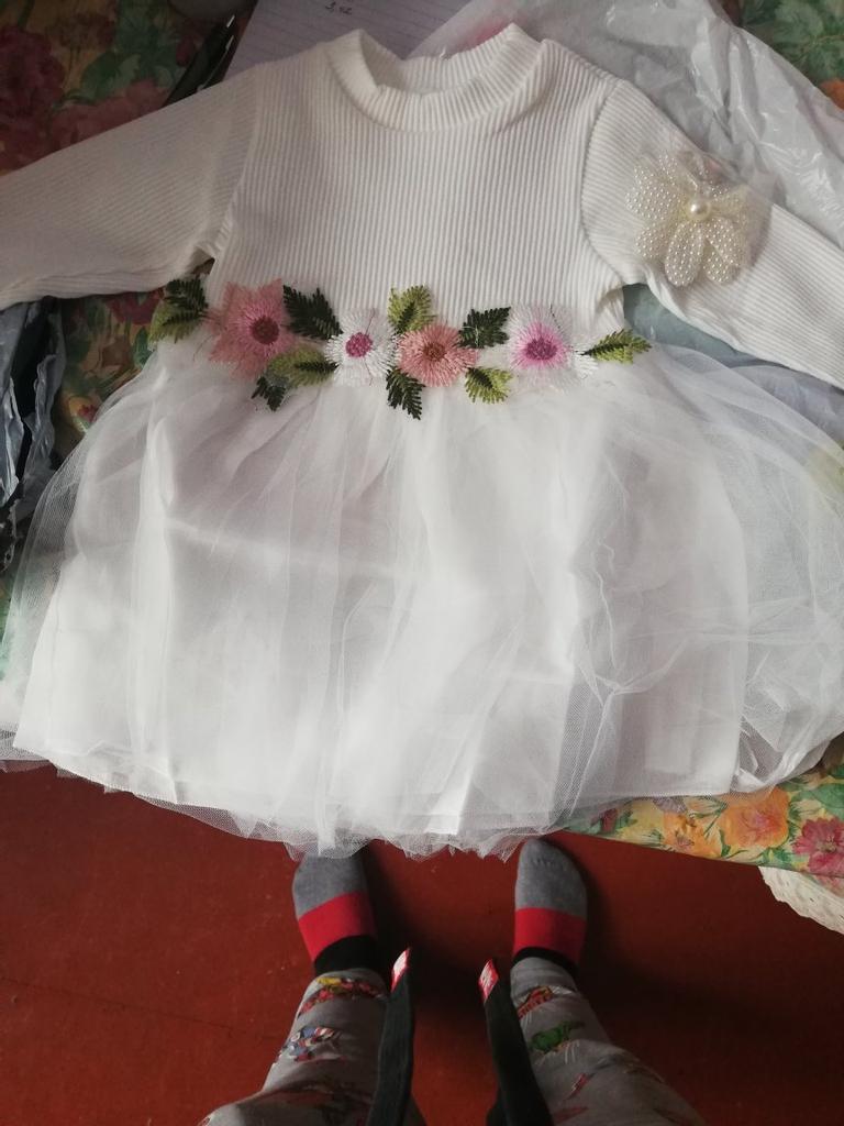 I ordered a very nice dress, the seams are even, no smell, for a year, but I don't know if we will wear it, as it may be short, but the sleeves will be perfect. For a height of 75, the sleeves are good, long. I recommend the seller, it arrived quickly!