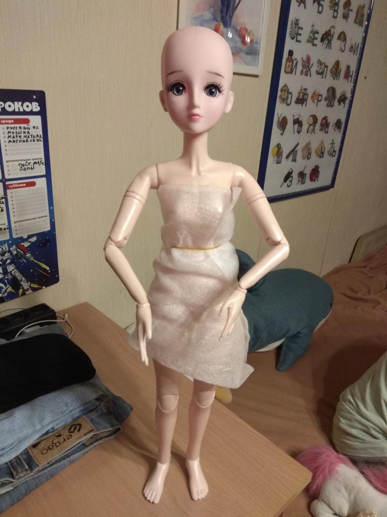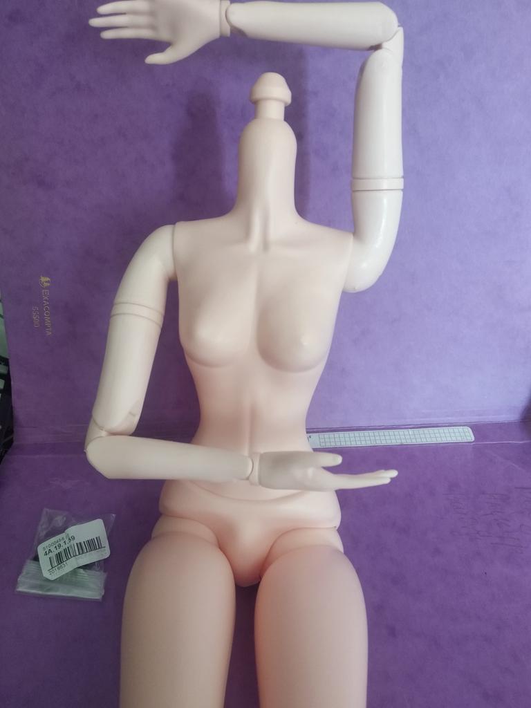 Good articulated body for 60 cm dolls, arrived clean, packed in a zip lock bag, with paper-like material on top and then in a regular bag.