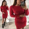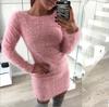 SCIONE Women Plush Round Neck Casual Sweater Loose Sleeve Long Sleeve Round Neck Plush Dress