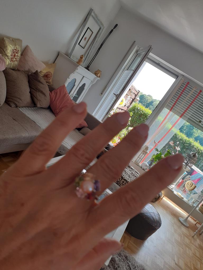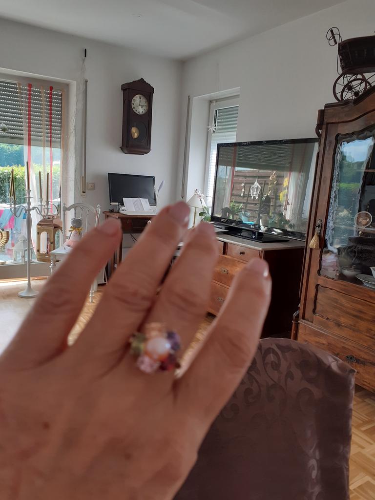 Gorgeous ring. It's so pretty and sparkly. Also it will go with any outfit as it's so colourful. I'm very impressed with this ring! (Picture is a bit jittery as my hands were shaking)