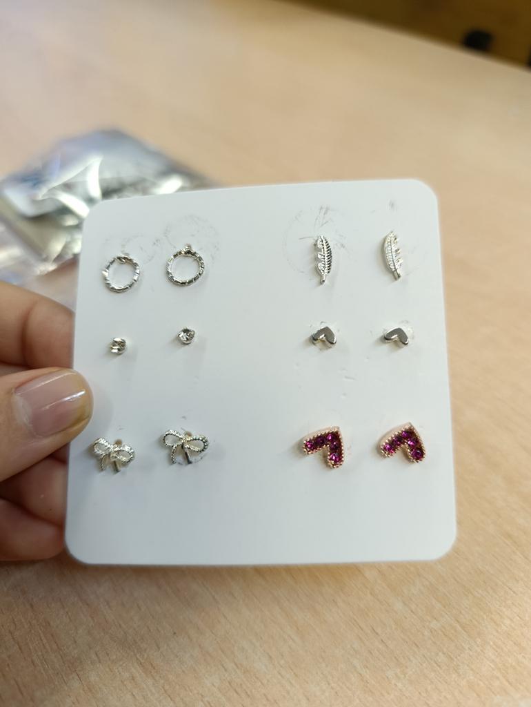 6Prs/Set Stylish Women Heart Feather Snowflake Circle Ear Stud Earrings Jewelry Jewelry Gift