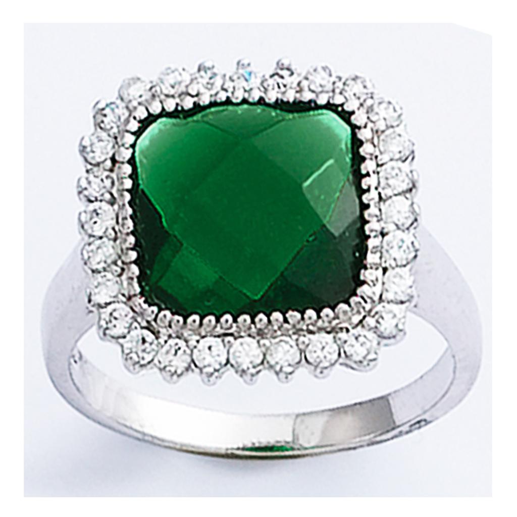Silver Ring 'Sissi' Green Silvery White (rhodium) - 15x15 Mm