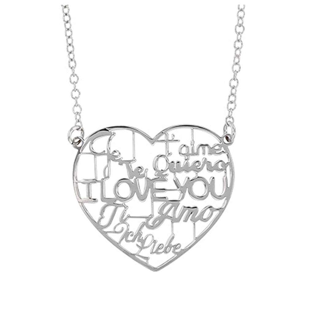 Les Trésors De Lily [Q9378] - Artisan Silver Necklace 'Love' Silver (rhodium-plated) - 26x25 Mm (I Love You)