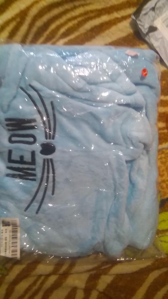 The order went for a month (and I did not like it). Fleece material, very pleasant. The color is bright.