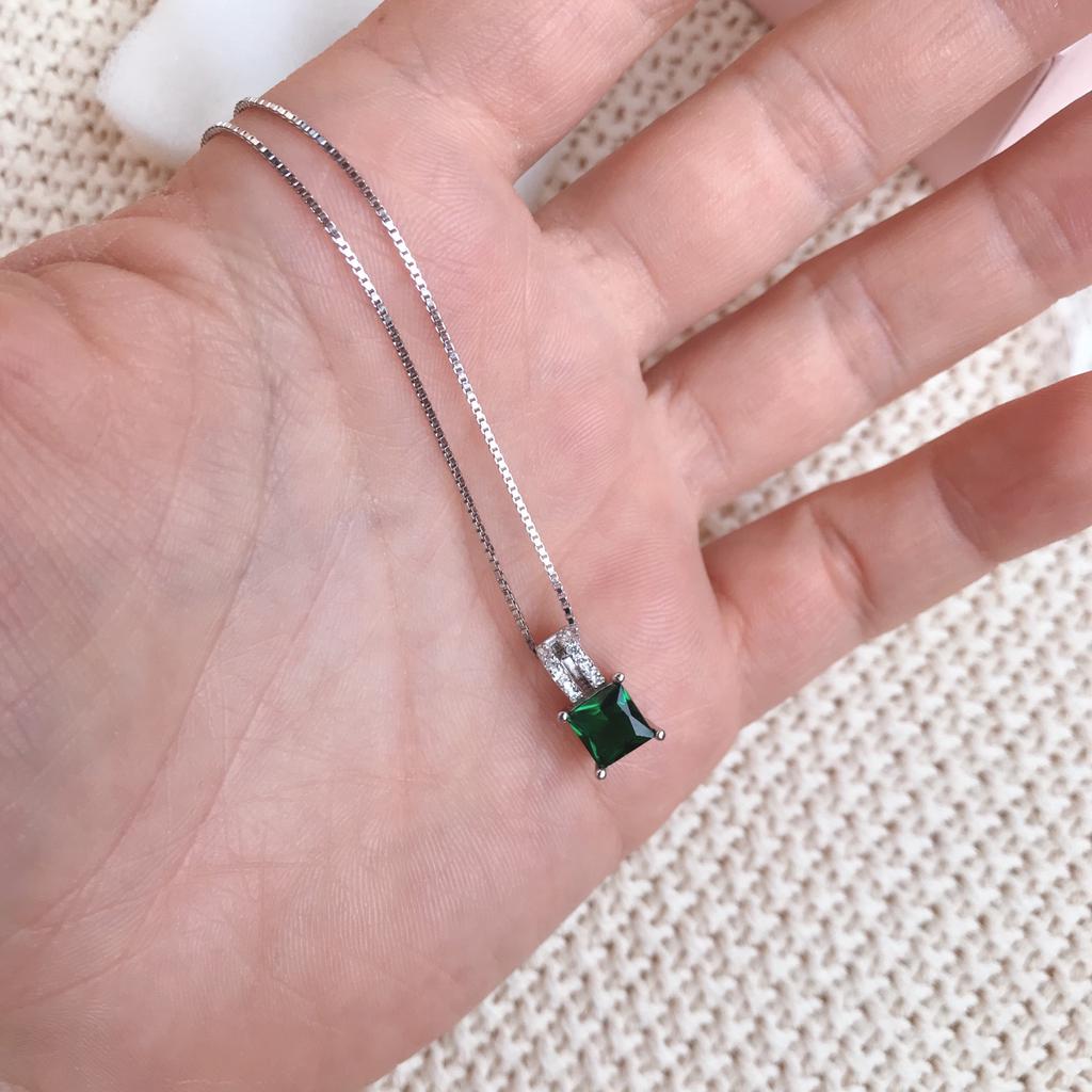 Umcho Green Princess-cut Emerald Charm Wedding Pendant