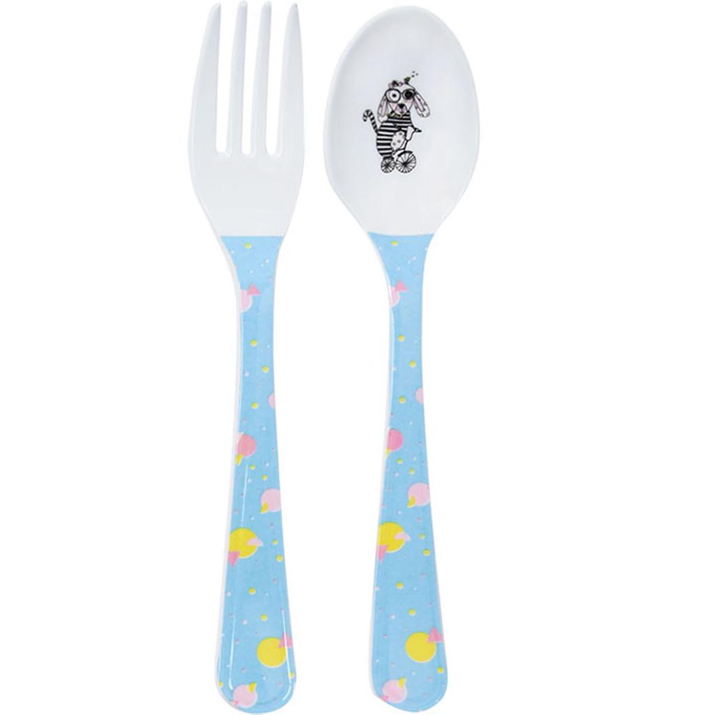 Les Trésors De Lily [R0653] - Children's Melamine Cutlery 'Saperlipopette' Blue (Vivienne Dog) - 16 Cm