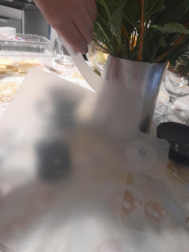 I stuck it on the wall in the kitchen behind the tap to protect against splashes.